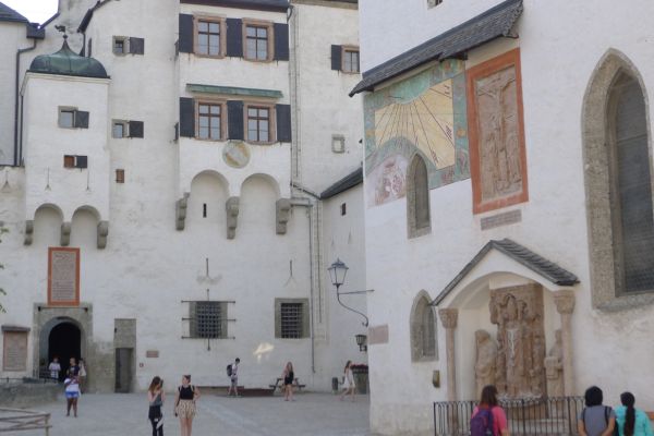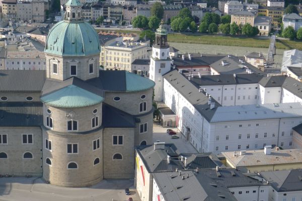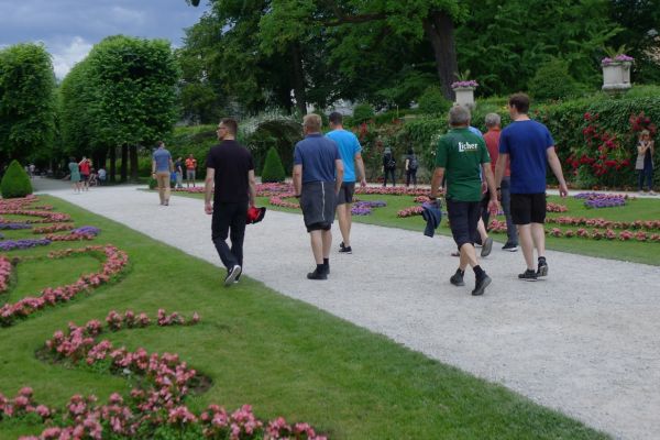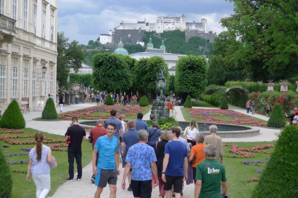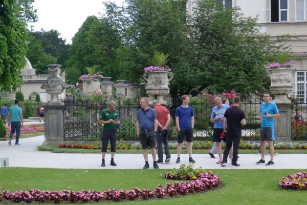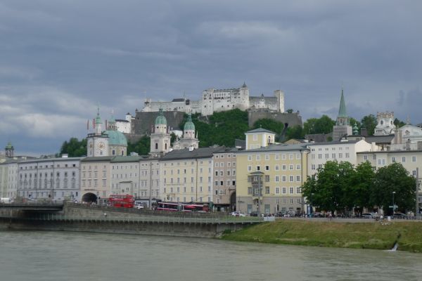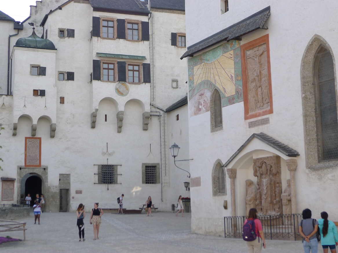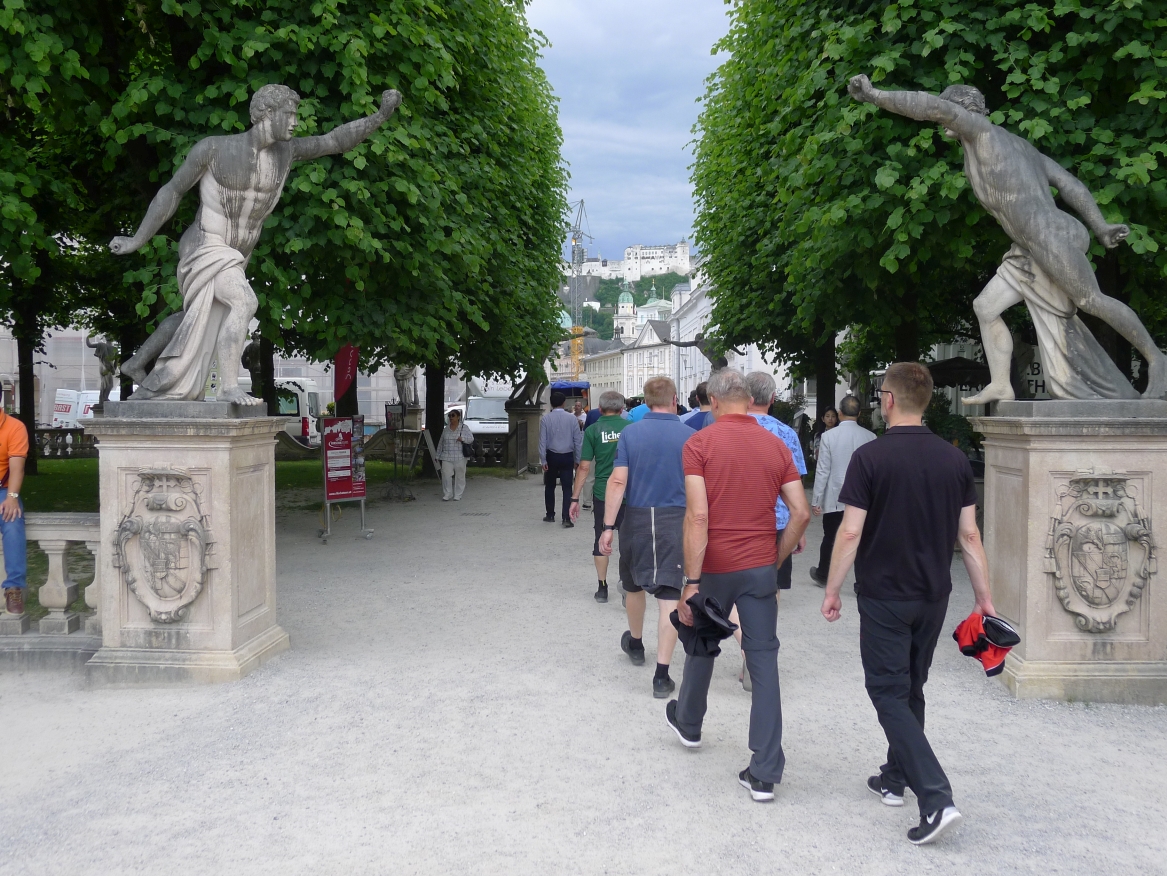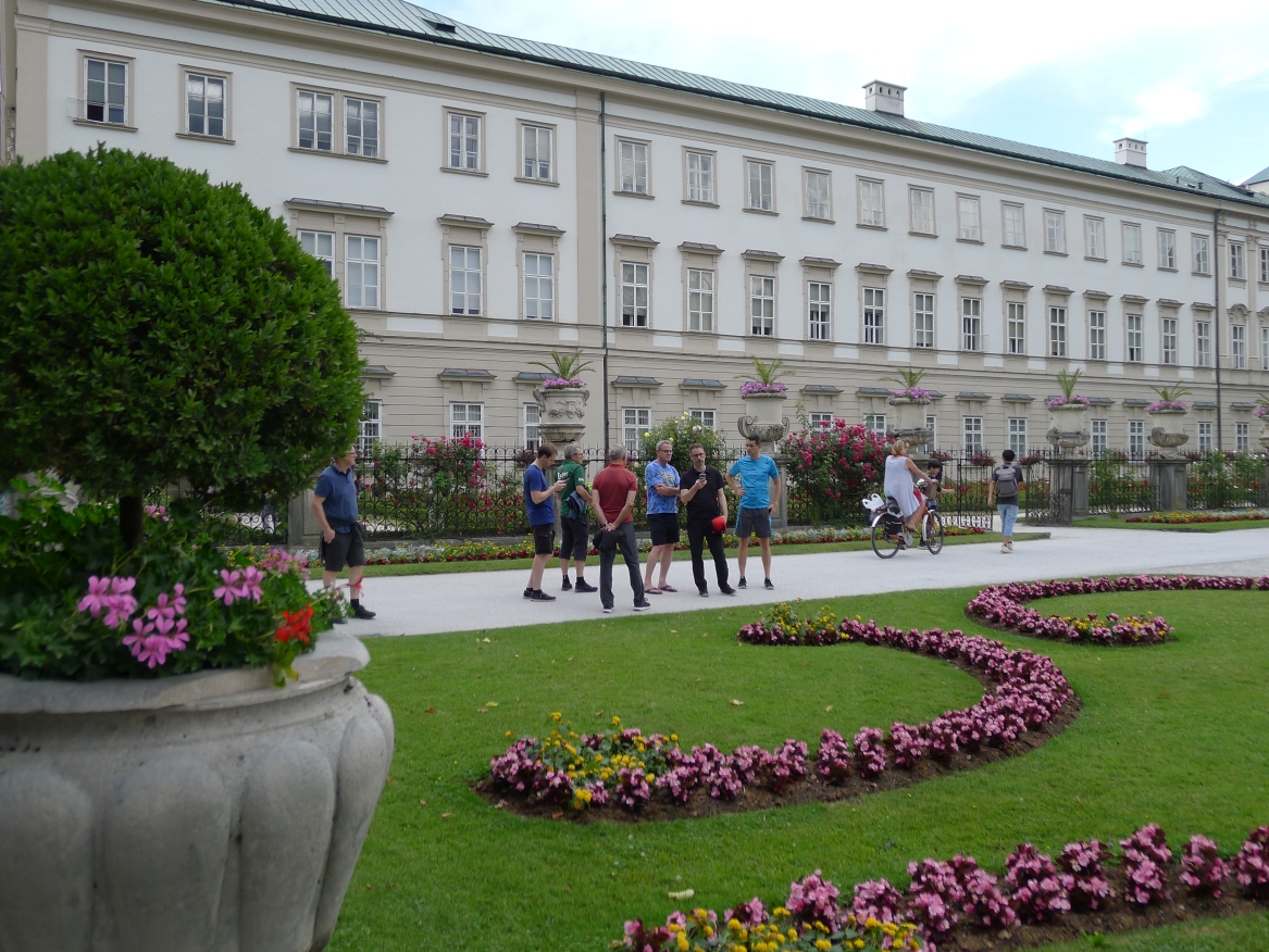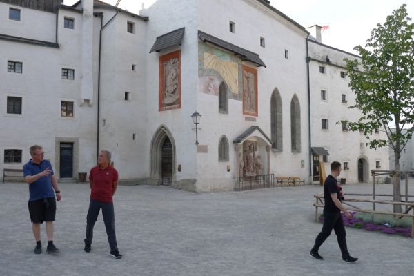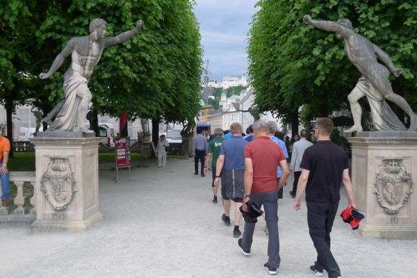 16:20 Uhr: nachdem der Rest der Truppe ne ¾ Stunde vor dem Hotel gewartet hat bis die 3-er WG der Jugendgruppe ihren Mittagsschlaf beendet hat, machen wir uns auf den Weg in die Stadt: Schloss und Park Mirabell, Altstadt mit Mozarthaus, Dom, Festung Hohensalzburg….. Der Stadtrundgang und vorallem der Blick von der Festung war schon sehr beeindruckend. Bei einem Espresso und einem Glas Grünen Veltiner („Gedeck oft he day“) kommt Urlaubsstimmung auf.
