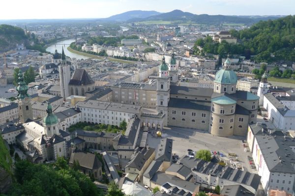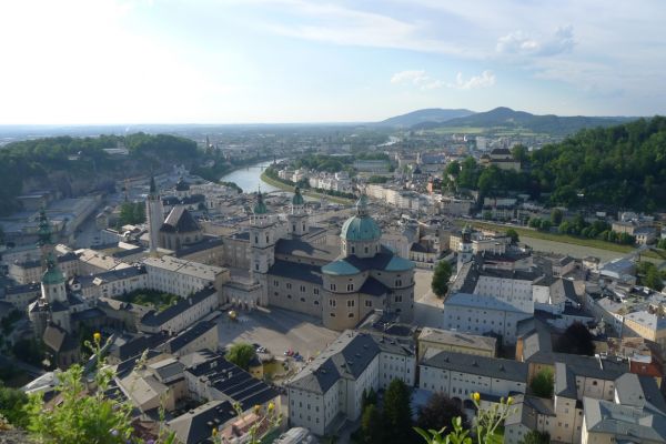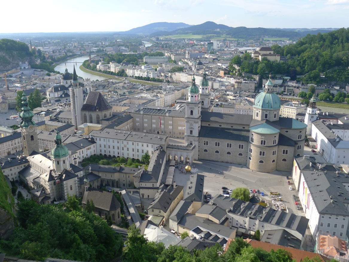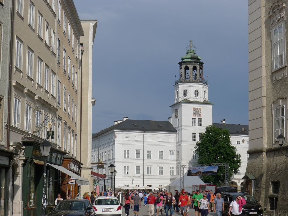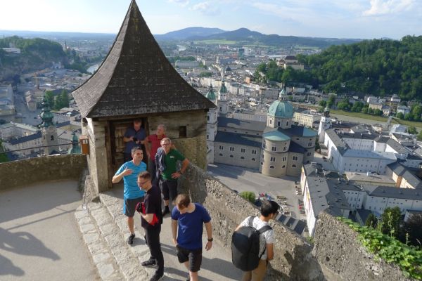 14:34 Uhr: Ankunft in Salzburg. Eigentlich täte Radfahren jetzt gut. Wir belassen es aber bei einer kurzen Fahrt zum Hotel und erkunden die Mozartstadt per Pedes.