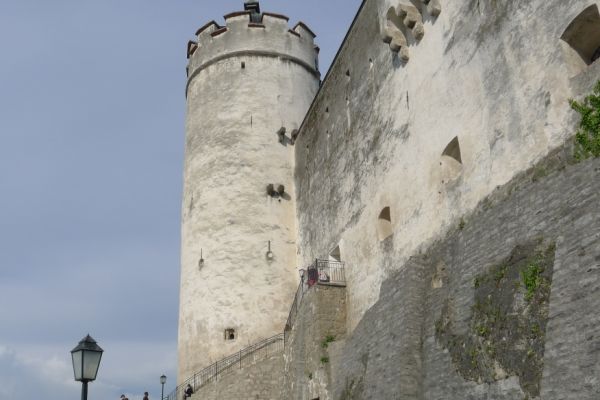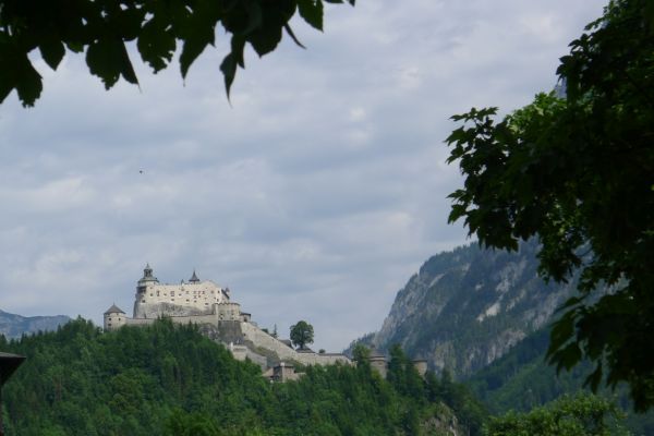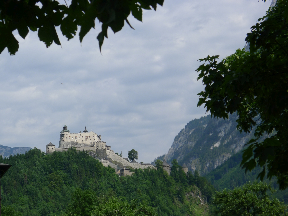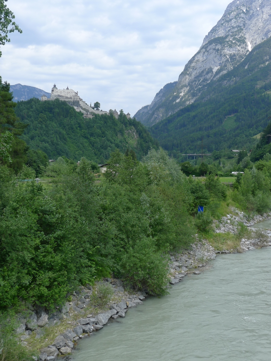 11:10 Uhr: der nächste Anstieg führt an der Burg Hohenwerfen vorbei, die auf einem steilen Felskegel hoch über der Salzach thront.