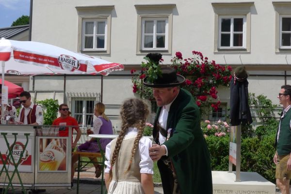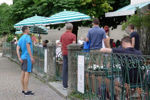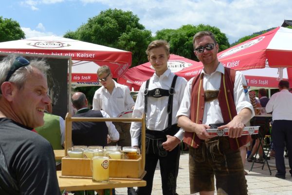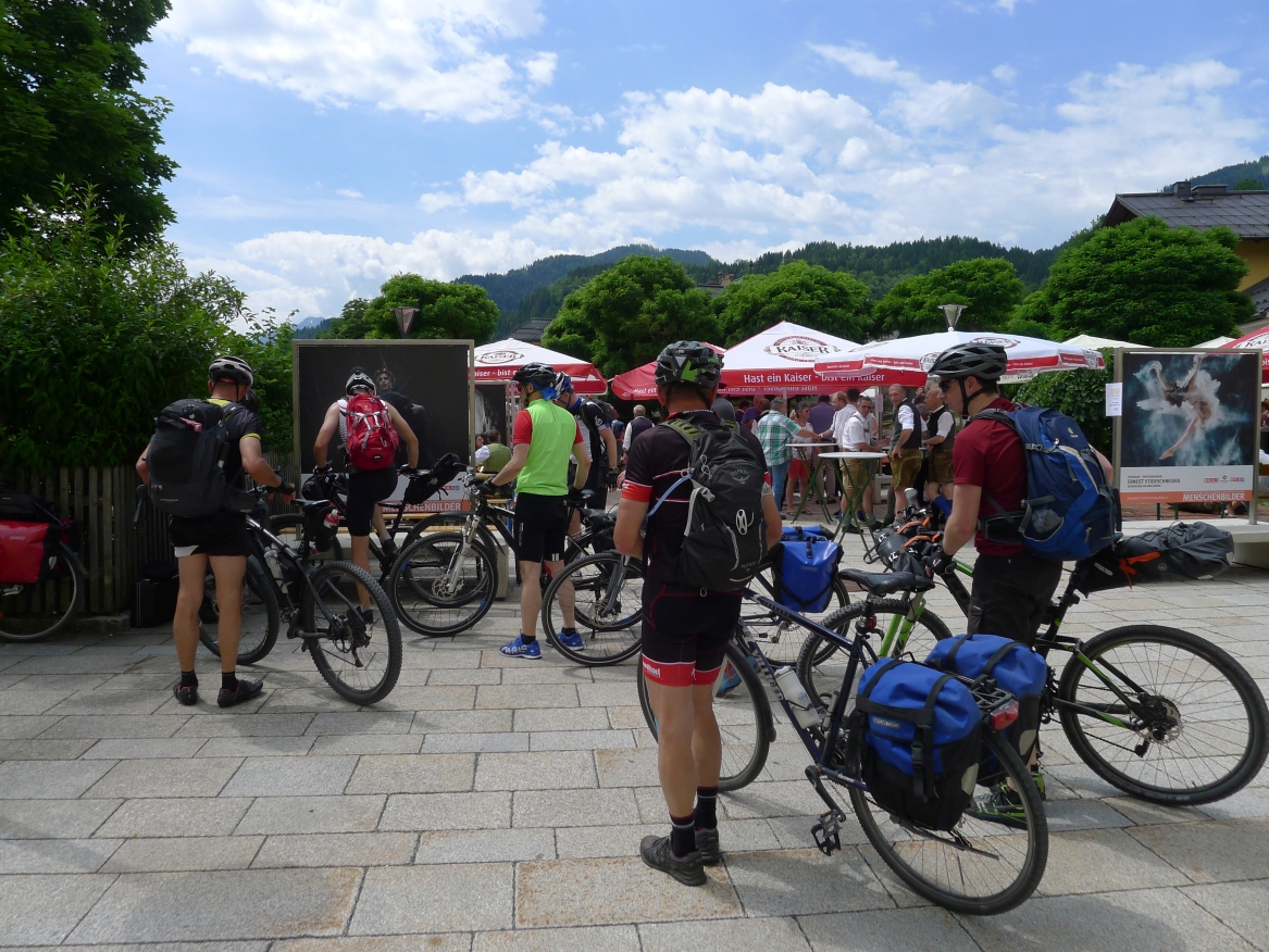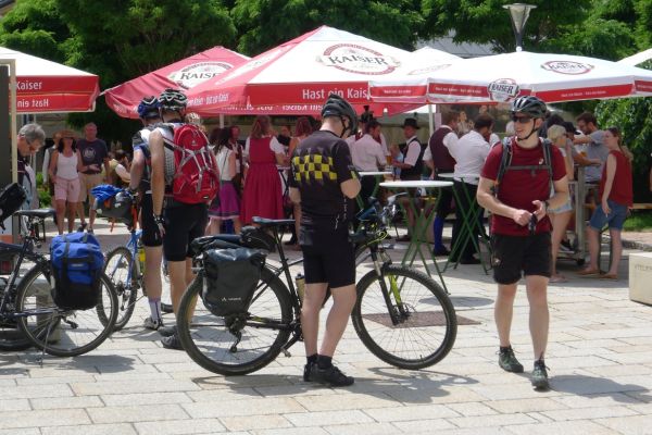 12:00 Uhr: wir erreichen Bischofshofen, biegen einmal falsch ab und landen mitten in einem Fest. Einsetzendes Hungergefühl, Blasmusik und frisch Gezapftes überzeugen uns zu bleiben.