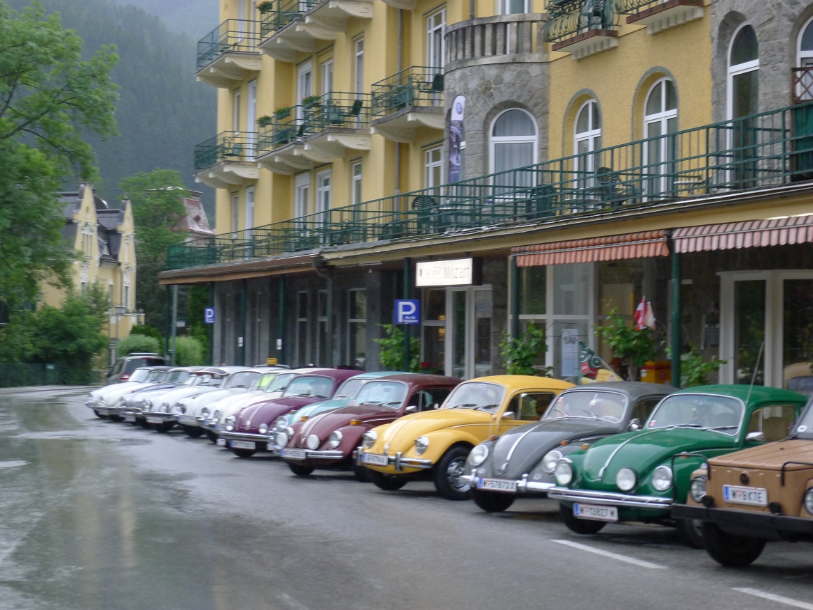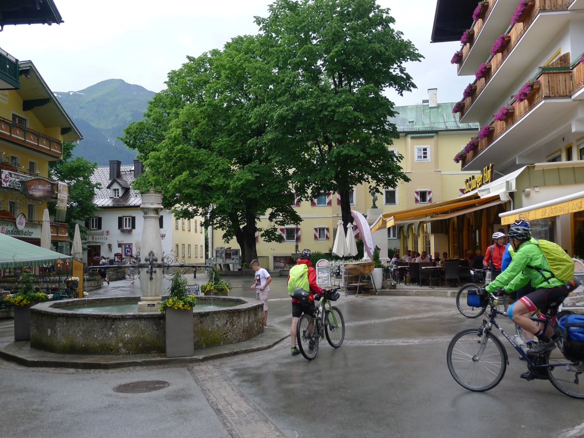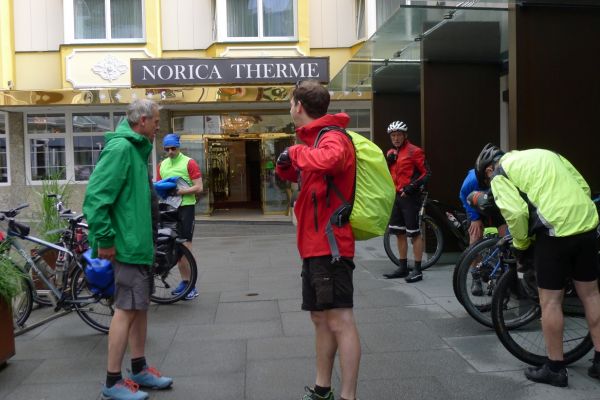 15:20 Uhr: der Platzregen ist vorüber, es nieselt nur noch etwas, wir sind in Regenzeug verpackt und können weiterfahren. Nächstes Ziel Kaffeepause in Bad Hofgastein.