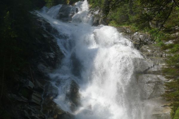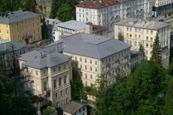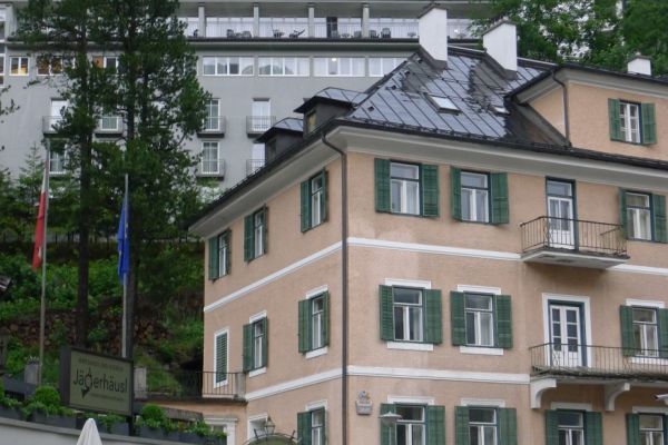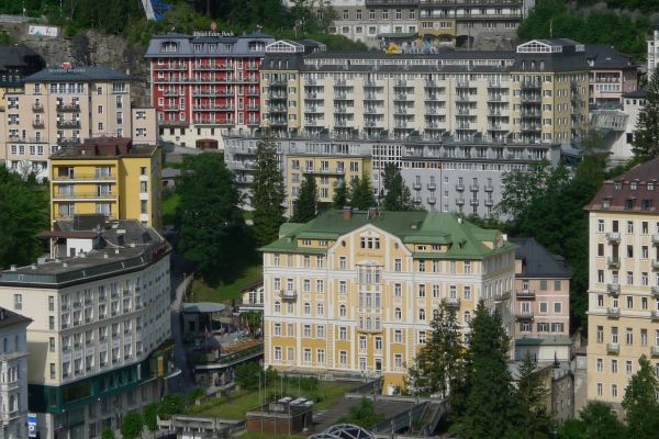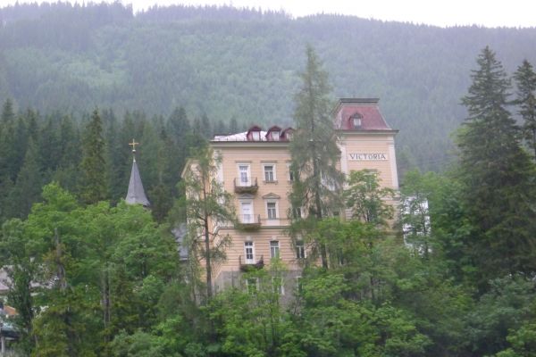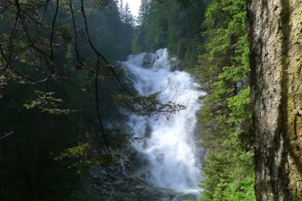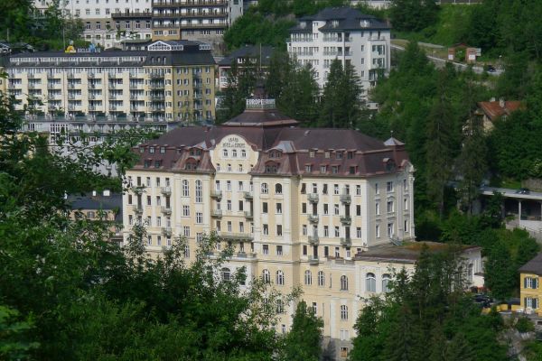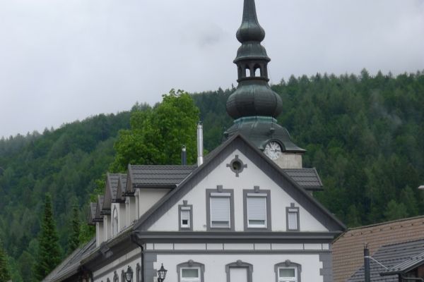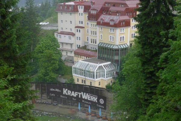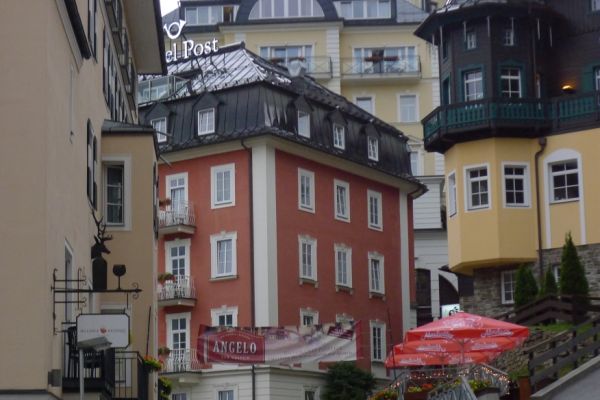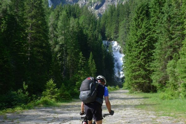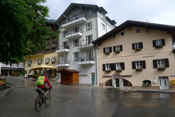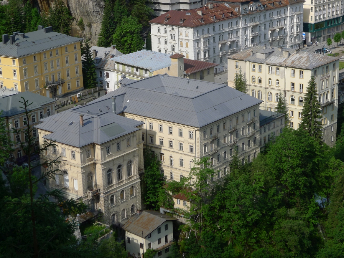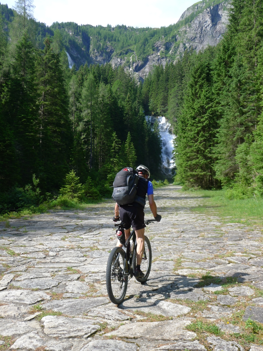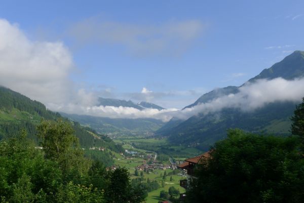 18:45 Uhr: nach einem 4km langen und teilweise sehr steilen Schlussanstieg erreichen wir das Hotel in Bad Gastein. Natürlich liegt es ganz oben auf dem Berg und zu regnen begonnen hat es auch wieder. So bleibt wenig Zeit und Muße für einen Blick auf die Hotels der Belle Époque, oder was von ihnen übriggeblieben ist. Lediglich am Wasserfall machen wir kurz halt und schauen den Wassermassen hinterher, wie sie mitten durch den Ort ins Tal stürzen.