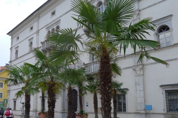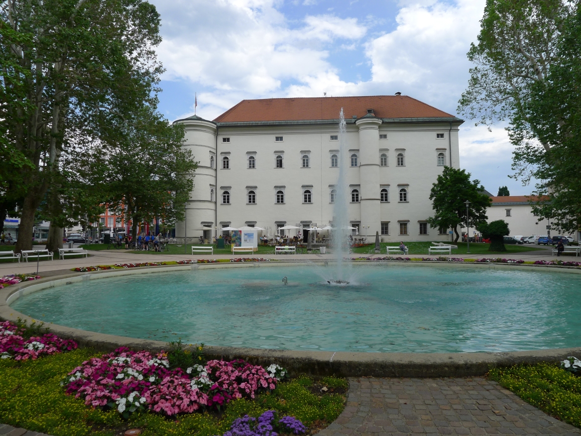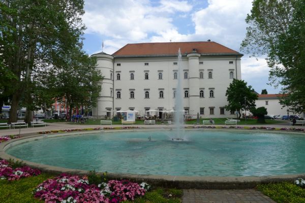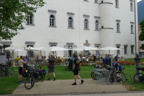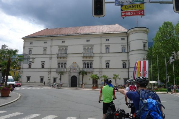 13:40 Uhr: Mittagspause in Spittal an der Drau. Wir sitzen auf der Terrasse des Schlosses mit Blick auf den Park und beobachten, wie ein Gewitter gerade so an uns vorbeizieht.