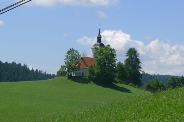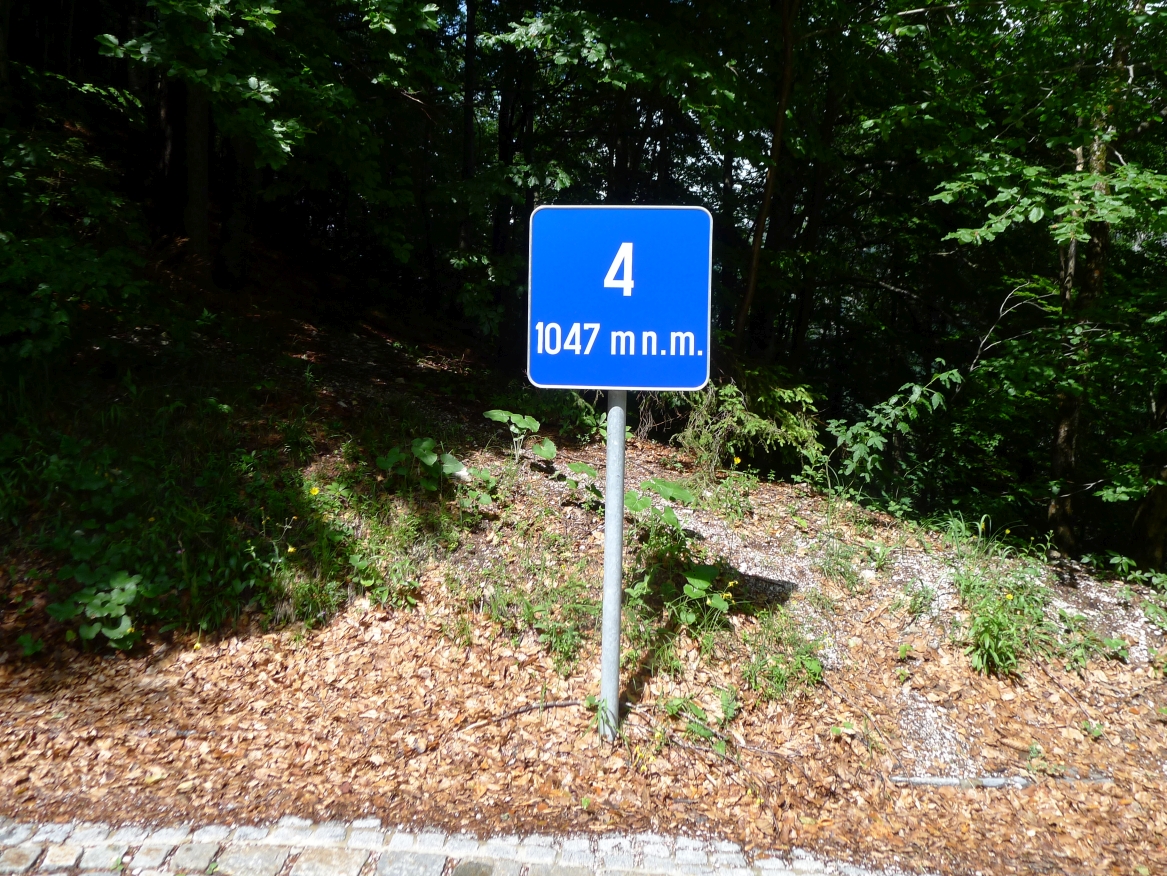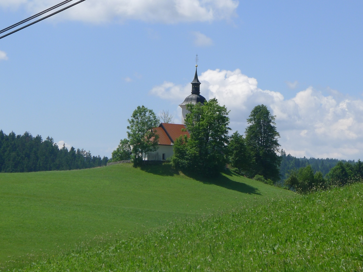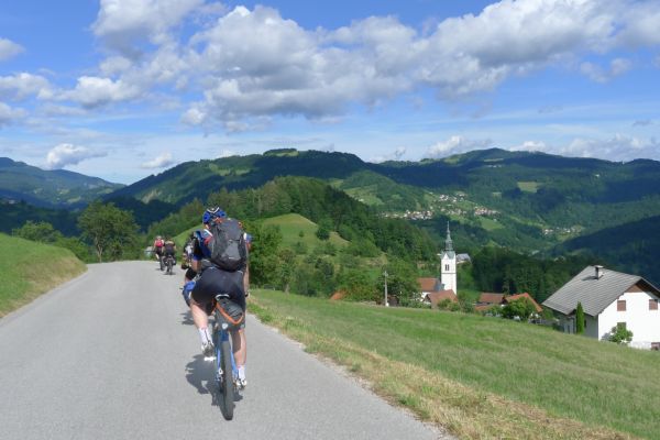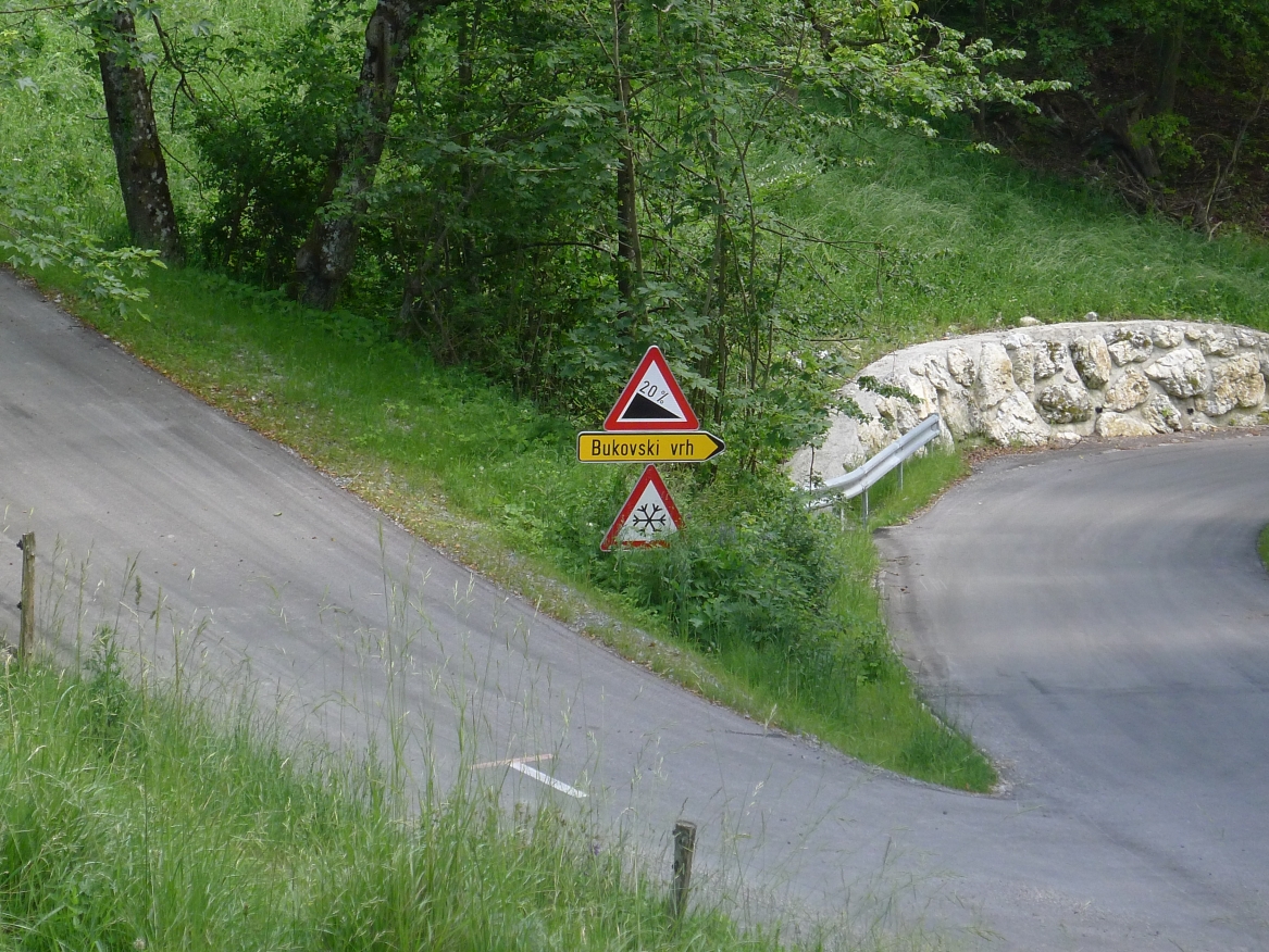 11:20 Uhr: wir erreichen mit Žiri einen größeren Ort. Weiter geht es auf einer Nebenstraße mit wenig Verkehr und zunächst auch wenig Steigung, aber dafür spürbarem Gegenwind. Die Steigung nimmt stetig zu, mit 4-5% lässt sich der 2. Anstieg des Tages aber noch gut fahren. Nach kurzer Abfahrt geht es dann auch wieder bergauf und wir nehmen die 2. Spitze dieser „mittleren Bergwertung“.