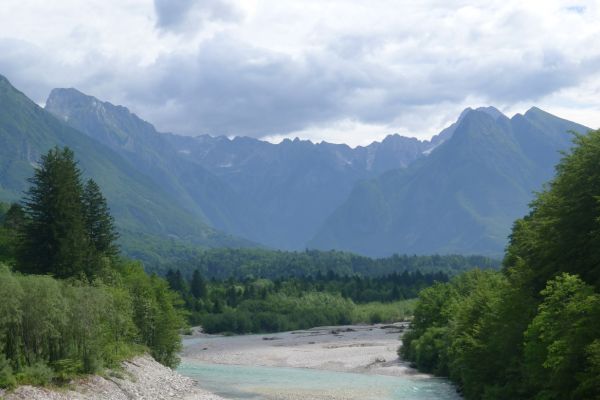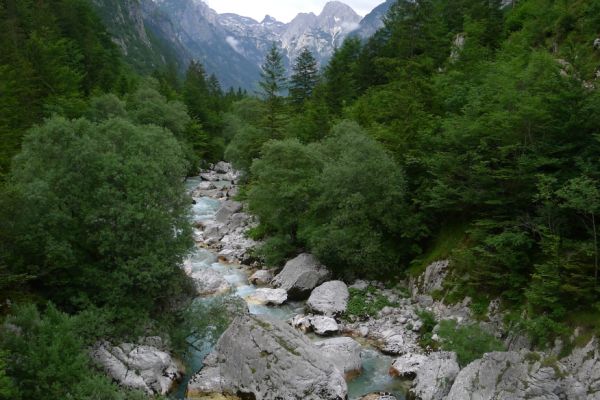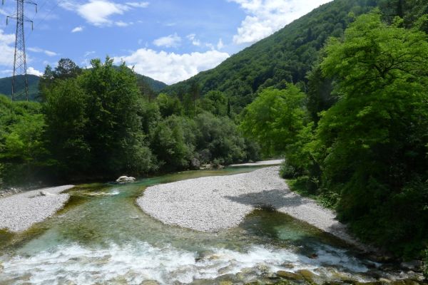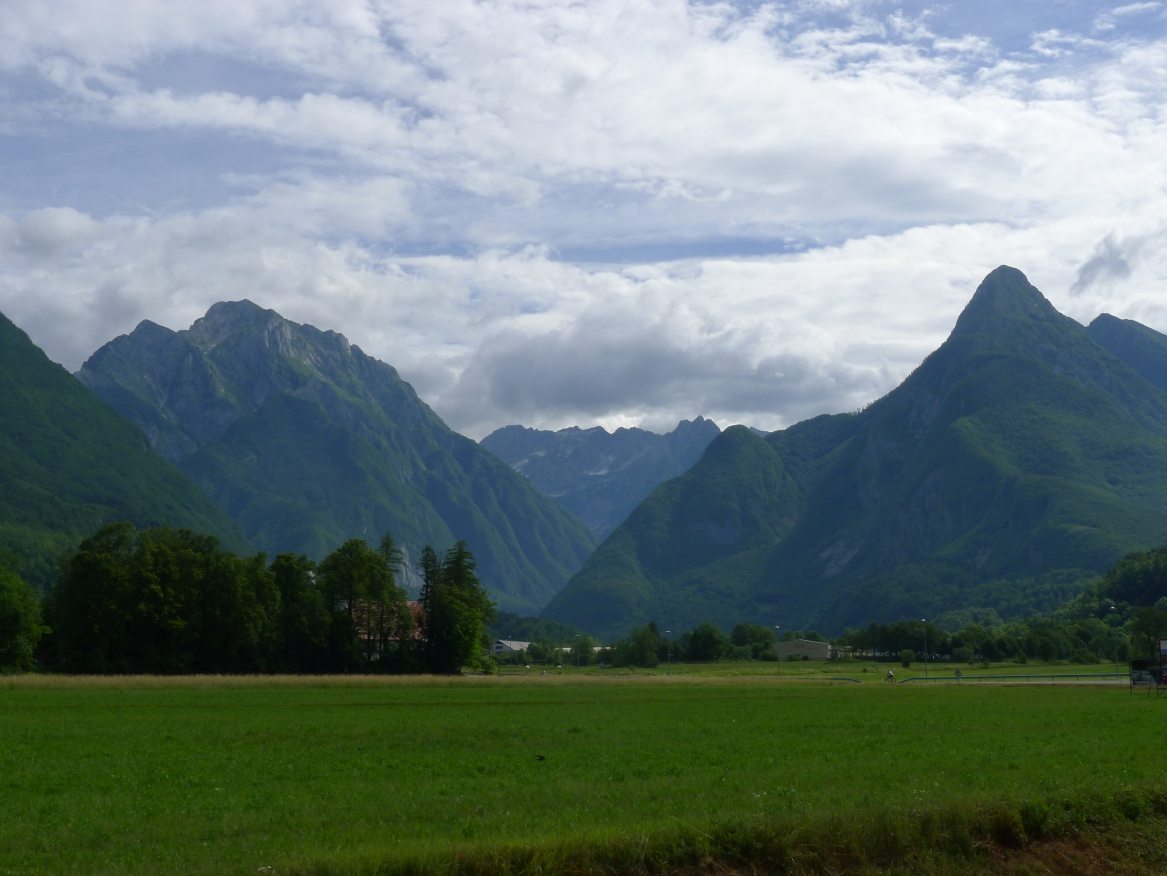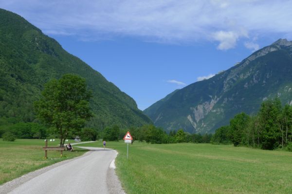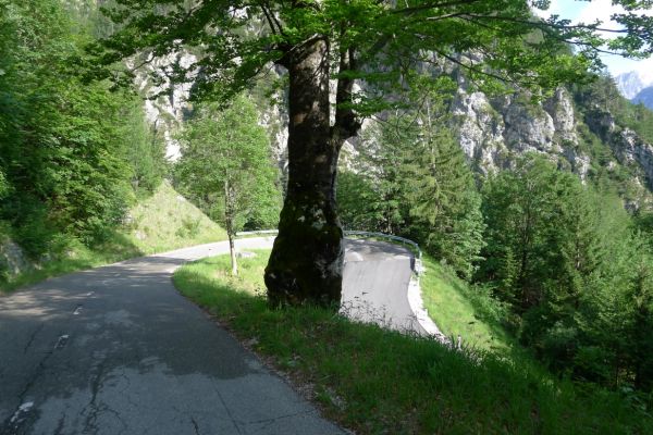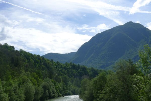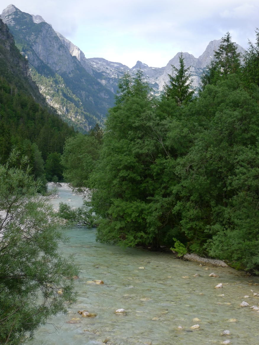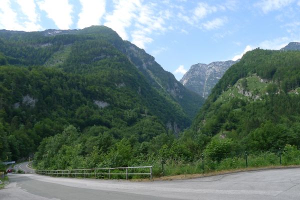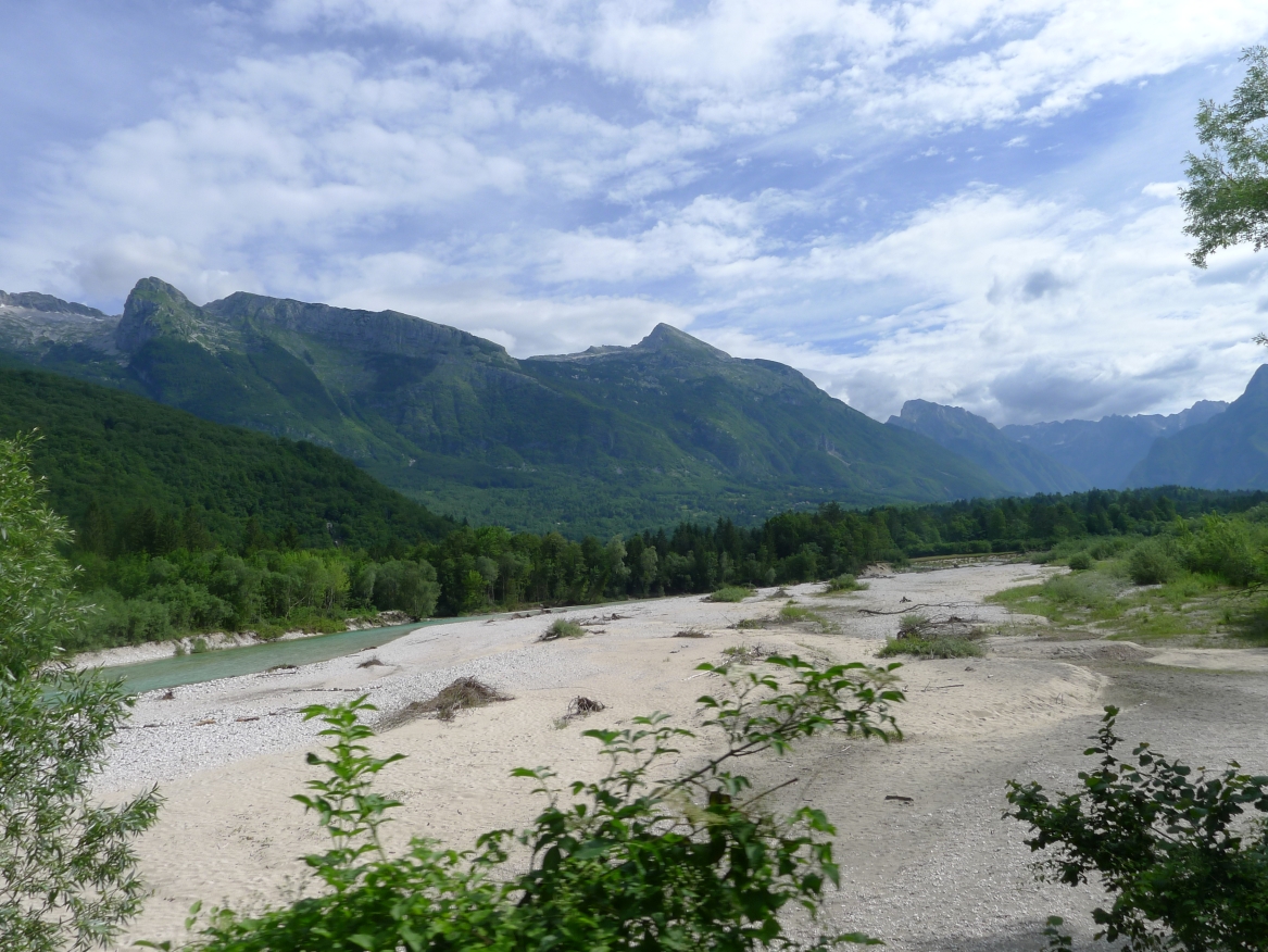 18:21 Uhr: mehrere Fotostopps später sind wir im Tal der Soča angekommen. Etwa 18 km bis zum Etappenziel Bovec haben wir noch vor uns, die Straße führt zumeist leicht bergab am Fluss entlang.