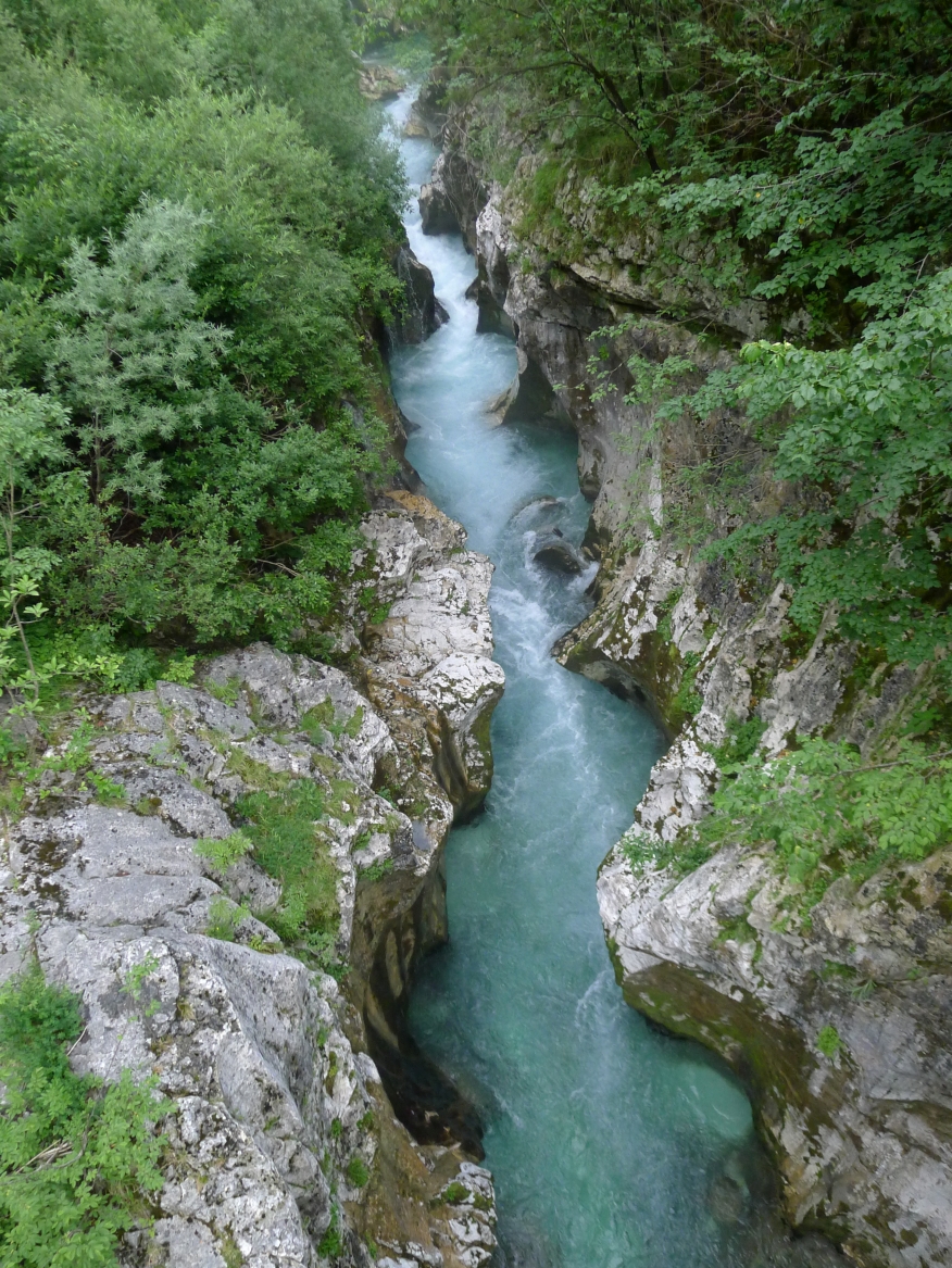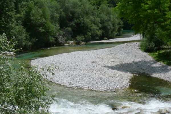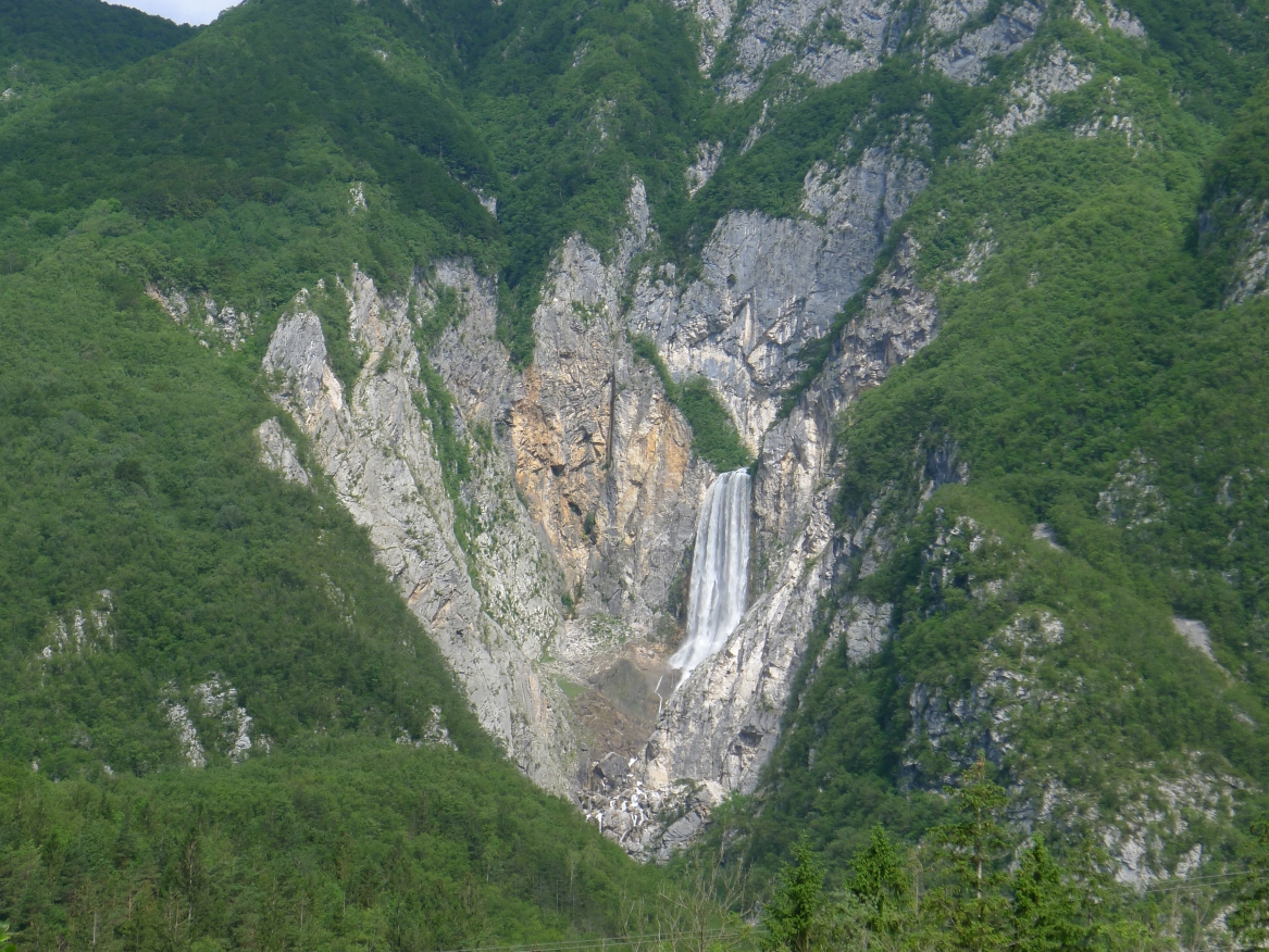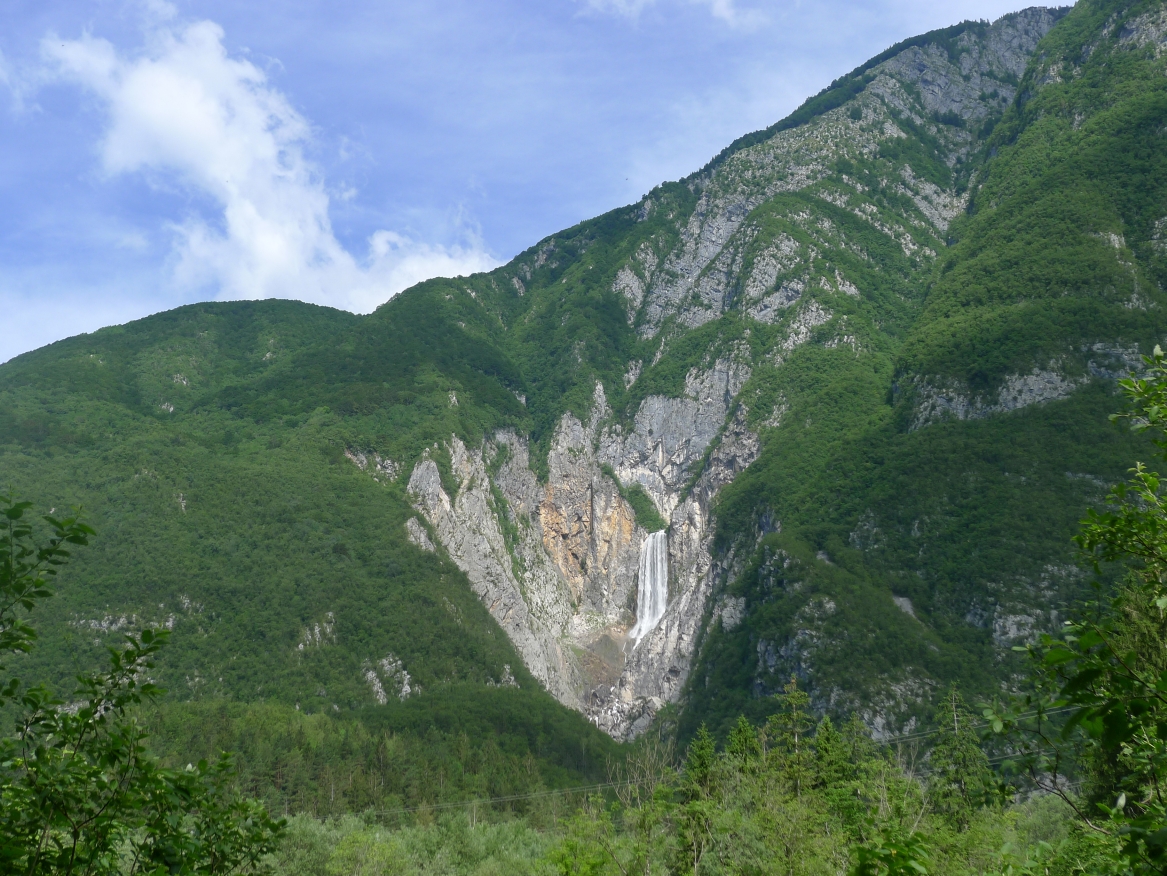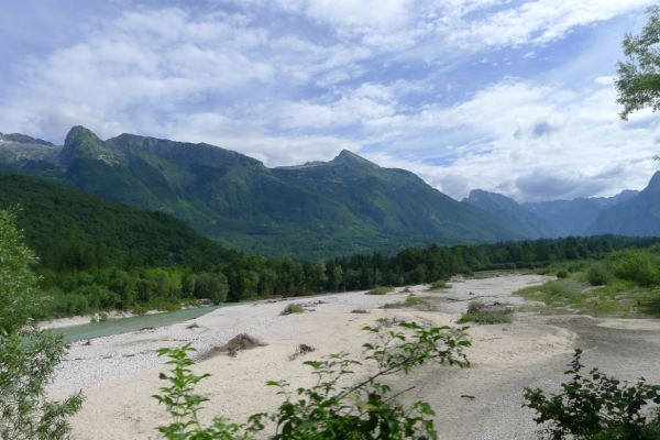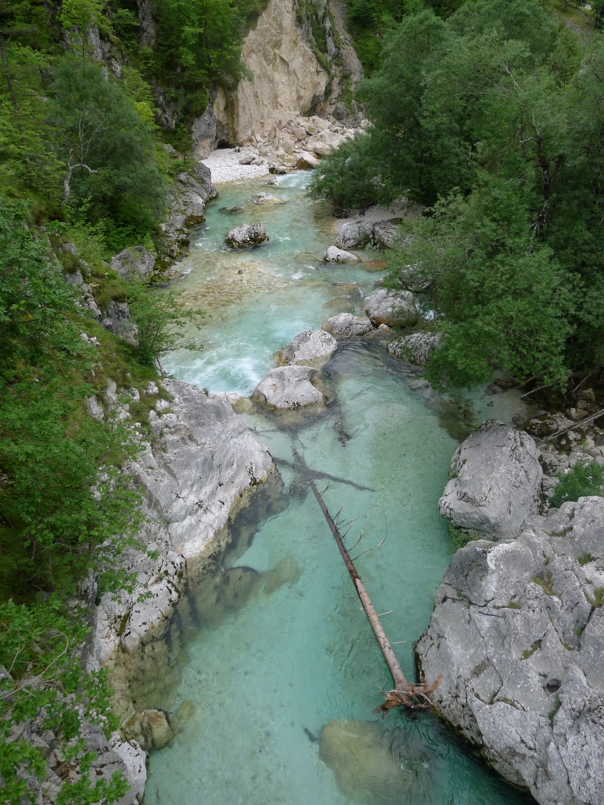 18:21 Uhr: mehrere Fotostopps später sind wir im Tal der Soča angekommen. Etwa 18 km bis zum Etappenziel Bovec haben wir noch vor uns, die Straße führt zumeist leicht bergab am Fluss entlang.
