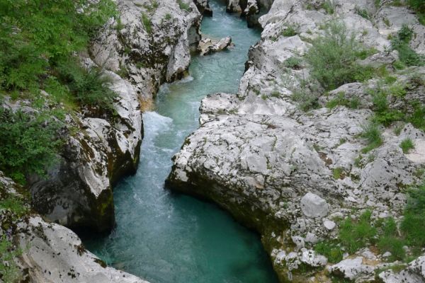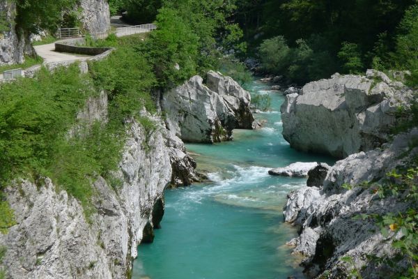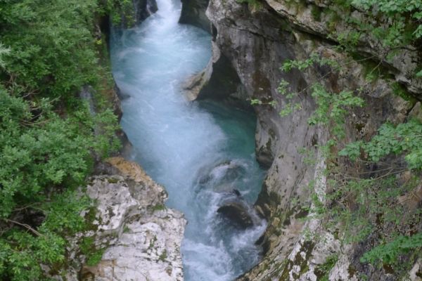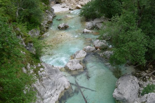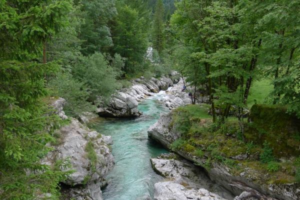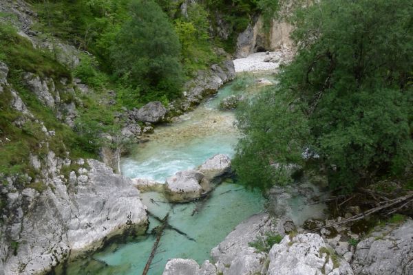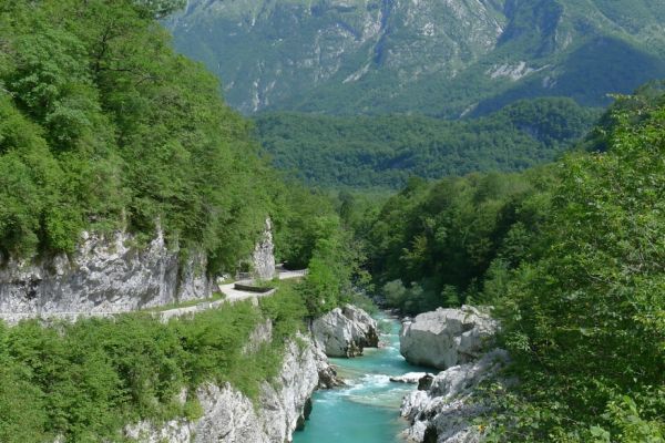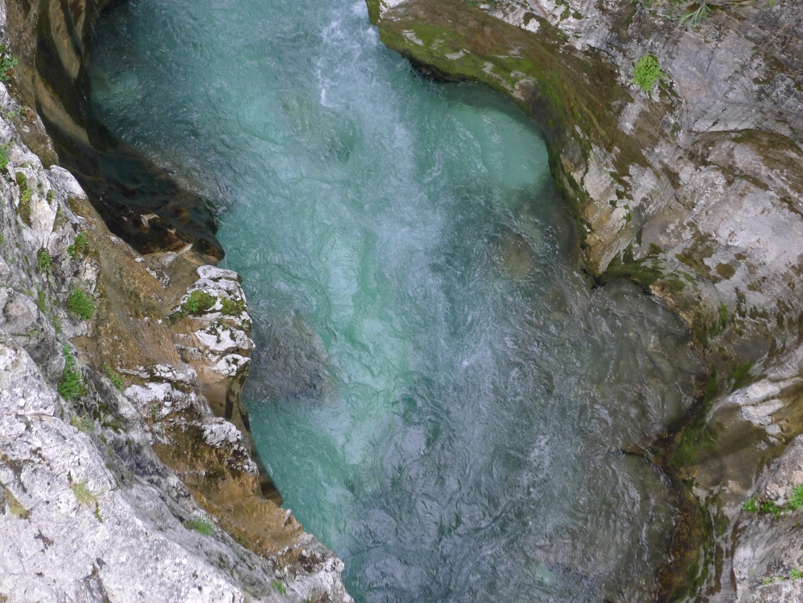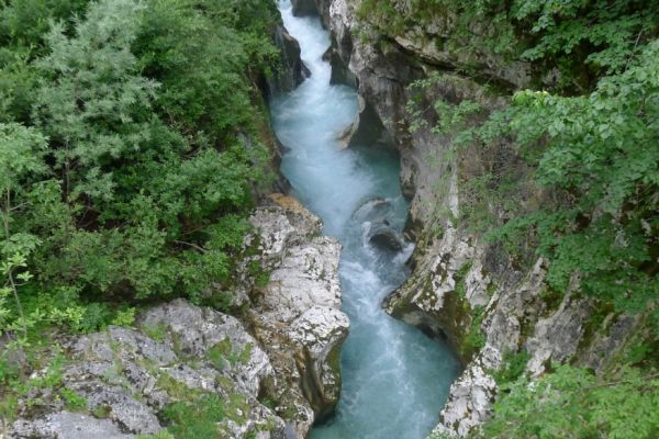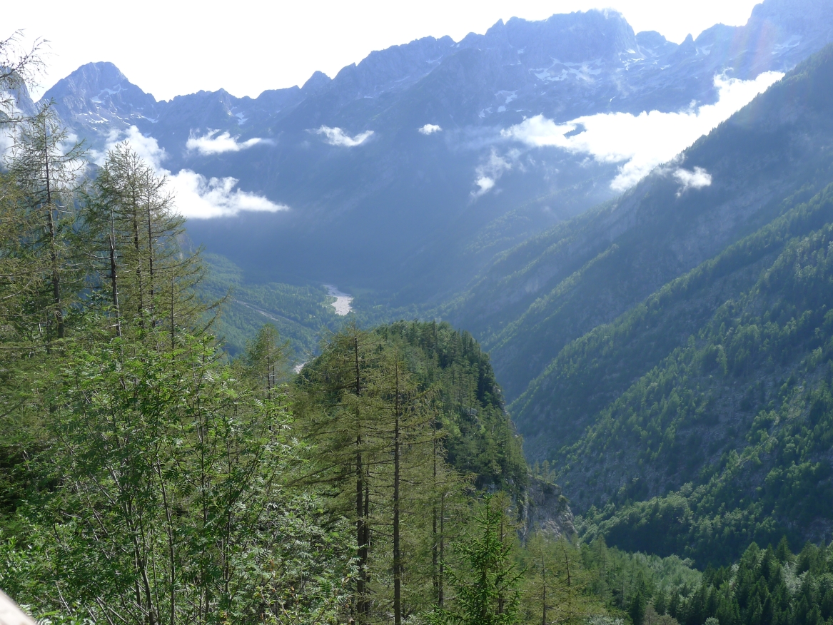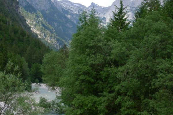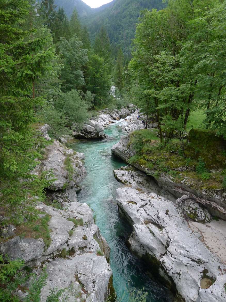 18:21 Uhr: mehrere Fotostopps später sind wir im Tal der Soča angekommen. Etwa 18 km bis zum Etappenziel Bovec haben wir noch vor uns, die Straße führt zumeist leicht bergab am Fluss entlang.