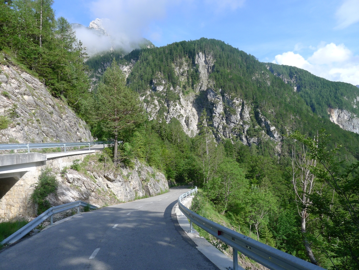 Auch wenn an den ersten Tagen das Wetter nicht immer perfekt war und wir vor zahlreichen Regenschauern flüchten mussten, war das landschaftliche Erlebnis einmalig. Das trübe Wetter passte gut zum morbiden Charme der verfallenen Hotels in Bad Gastein und das Wolkenspiel, als nach dem Regen die Sonne wieder herauskam, war postkartenreif. Das galt insbesondere auch für die Passage über den Vršič-Paß. Überhaupt hat uns Slowenien sehr beeindruckt, sowohl landschaftlich wie auch durch die vielen hilfsbereiten Menschen, die wir dort getroffen haben.