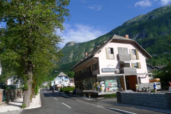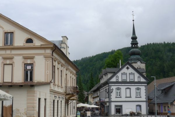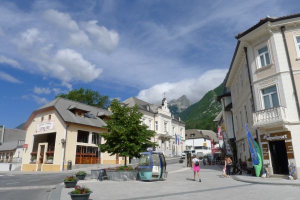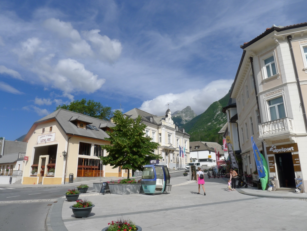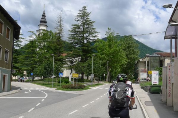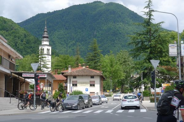 11:55 Uhr: Ankunft in Tolmin, ungefähr die Hälfte der Etappe ist geschafft. Zeit für eine Mittagspause.