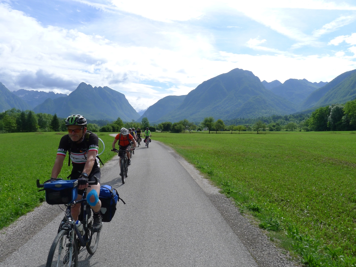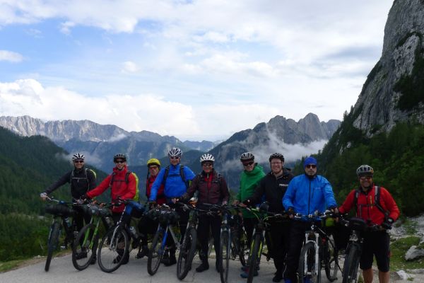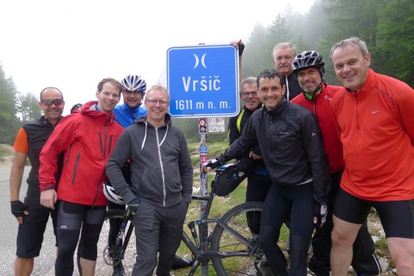 Die Gipfelstürmergruppe der Radfahrer des TUS Vollnkirchen sind erneut mit Sack und Pack zu einer Alpenüberquerung mit dem Rad aufgebrochen. Die Strecke über 550 km und 6930 Höhenmeter führte in 6 Etappen von Salzburg über Bad Gastein, Villach, Bovec, Cerkno und Postojna nach Ljubljana in Slowenien. Landschaftlicher Höhepunkt waren die Julischen Alpen mit dem Triglav Nationalpark. Um dort den Ausblick auf die Berge geniessen zu können, mussten auf der Königsetappe der Wurzenpaßmit einem 18% Steigungsstück und der Vršič-Paß mit 24 Kehren von Kranjska Gora bis zur Passhöhe bezwungen werden.