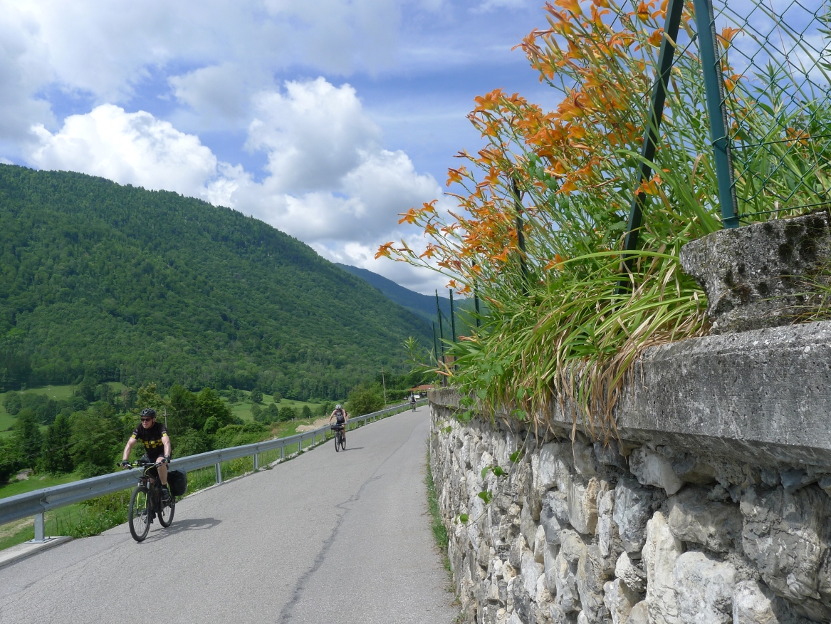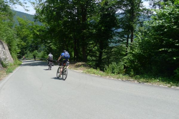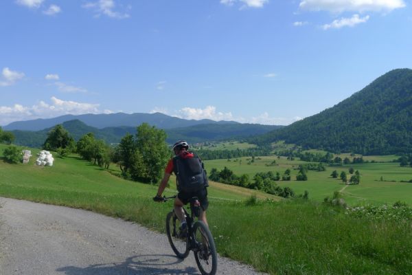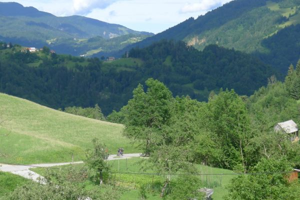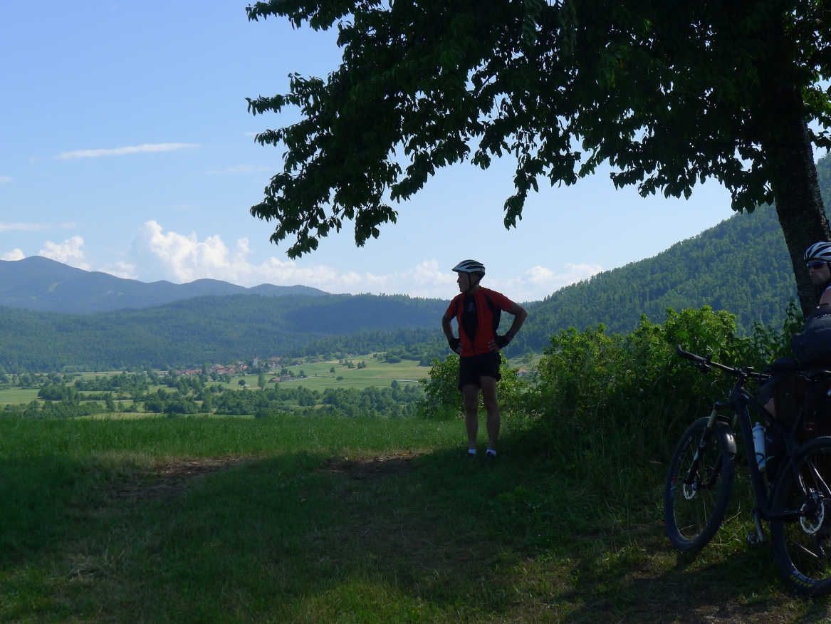 14:30 Uhr: nach ausgiebiger Pause fahren wir weiter. Die nächsten ca 12 km bis Logatec kurven wir wie auf Schienen immer leicht bergab durch eine schöne Mittelgebirgslandschaft.