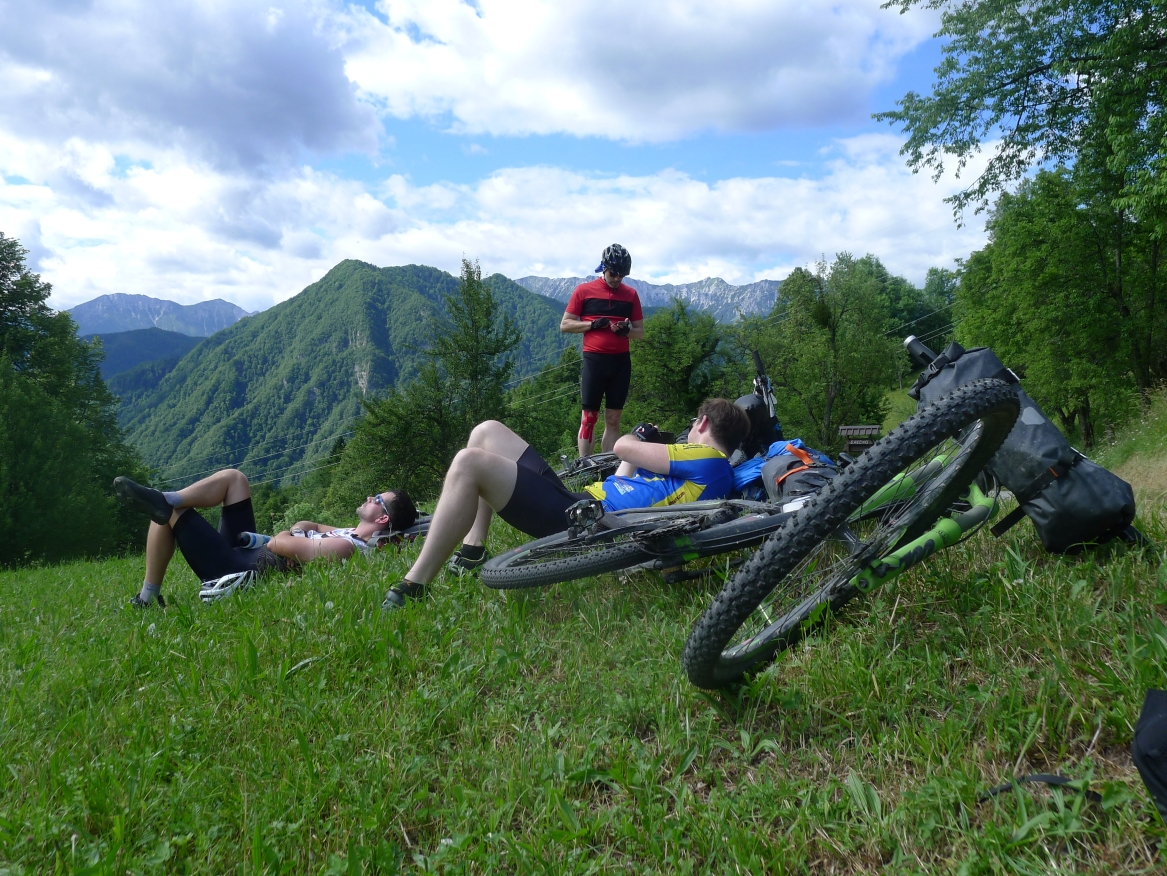 19:42 Uhr: Ankunft in Bovec. Die letzten Kilometer ziehen sich und kurz vor dem Ziel müssen wir einen Anstieg auf, der uns nochmal gehörig schwitzen lässt.