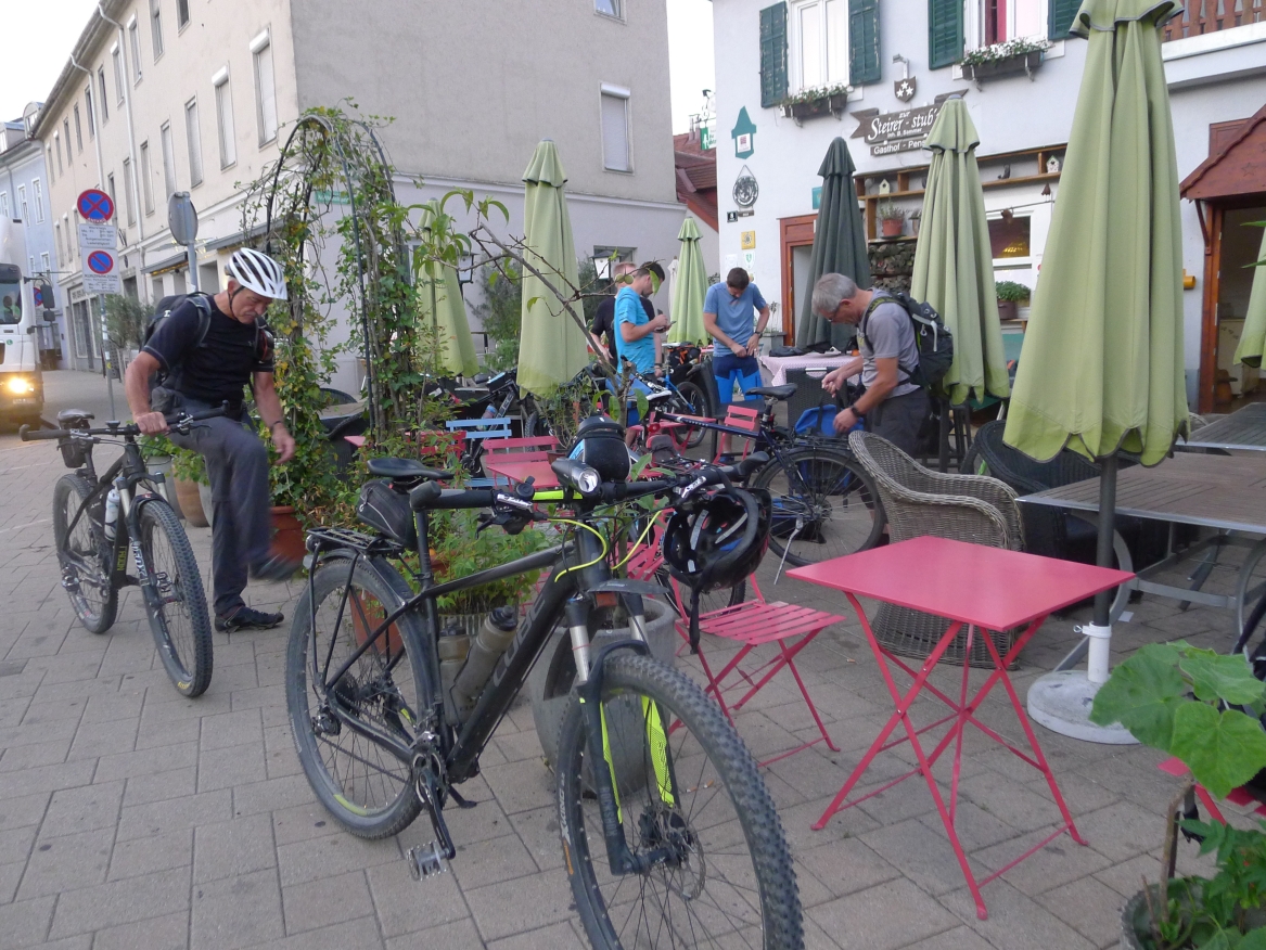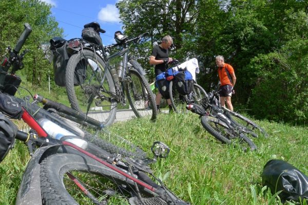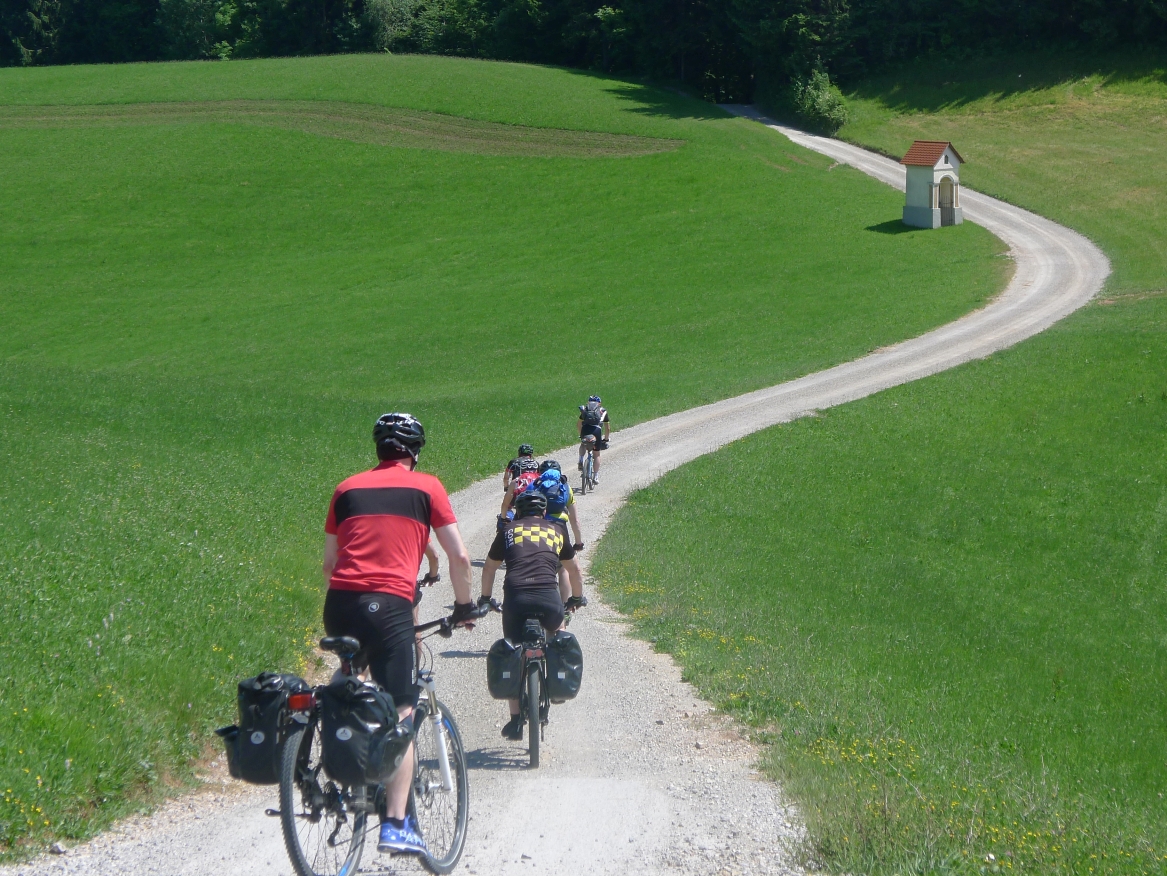 10:50 Uhr: wir erblicken wieder Tageslicht, satteln auf und brechen zur letzten Etappe nach Ljubljana auf. Bis 15:30 Uhr müssen wir am Bahnhof sein und haben knapp 60km und 600 Höhenmeter vor uns.