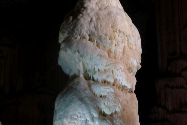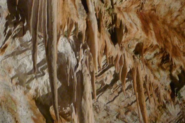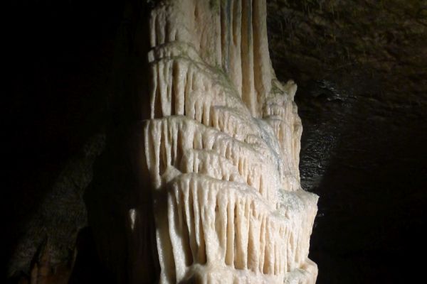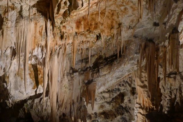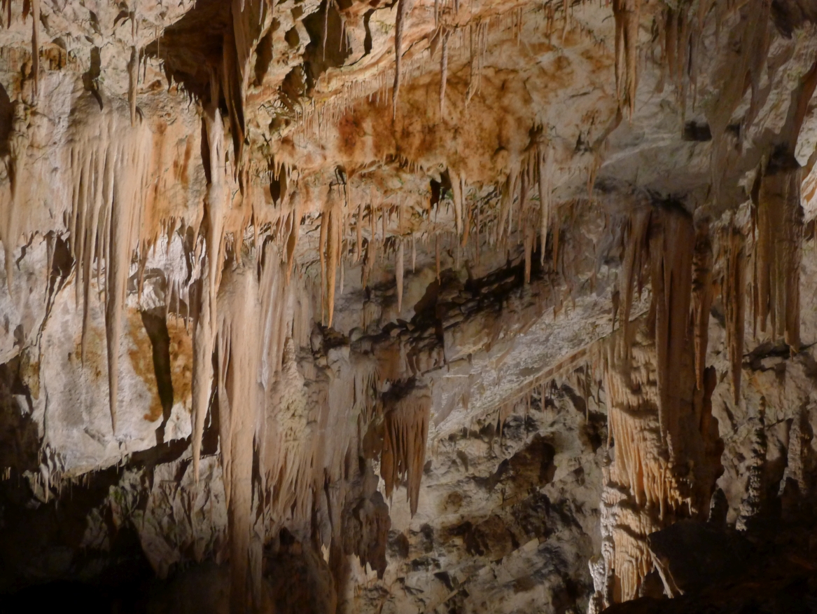 9:00 Uhr: die Führung beginnt, mit dem Zug geht es zunächst 3,5km ins Innere der 24km langen Höhle. Ein 1,5km langer Rundweg führt uns dann auf mehreren Ebenen an den schönsten Tropfsteinen vorbei ins Reich der Grottenolme.