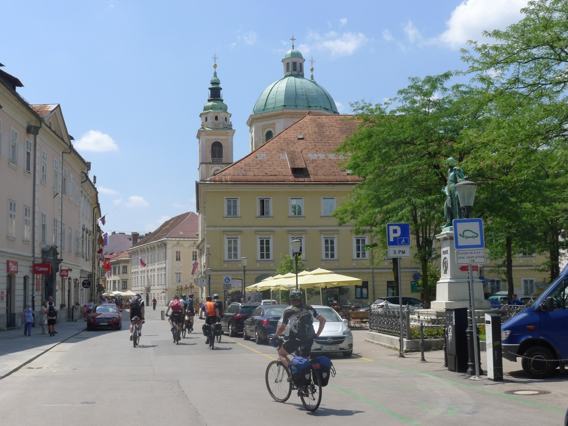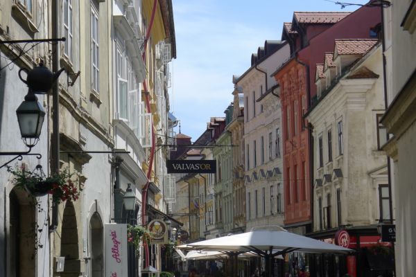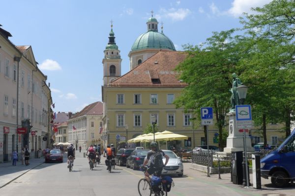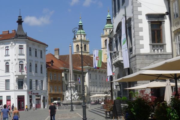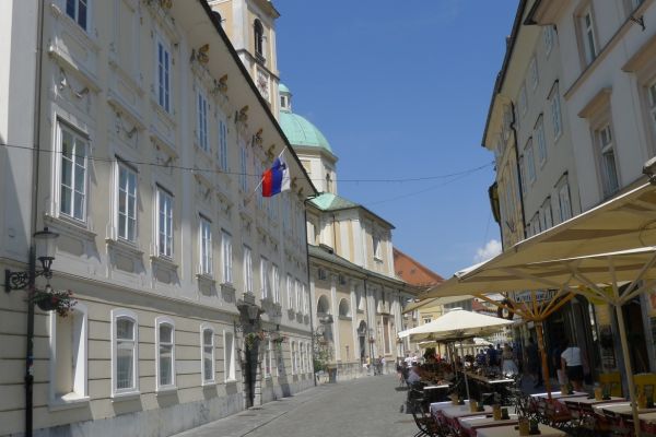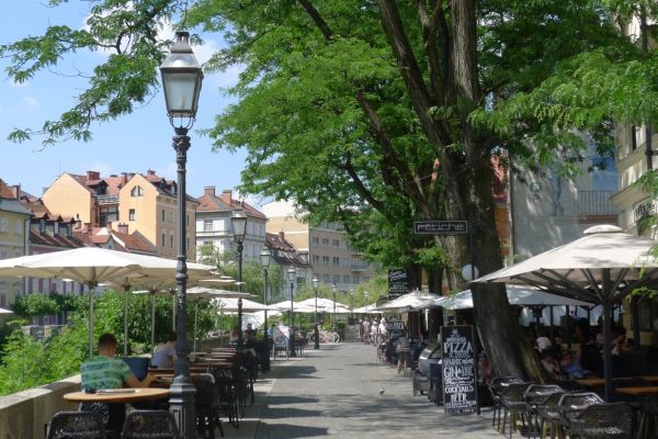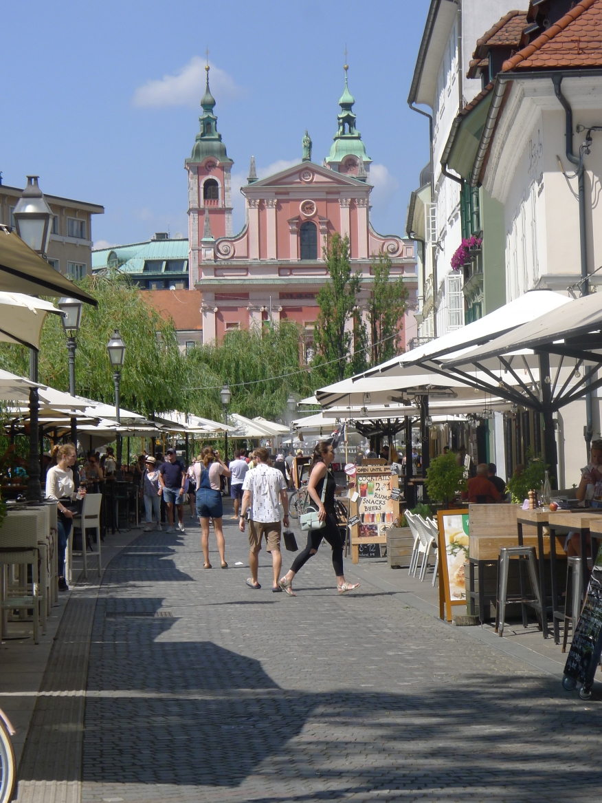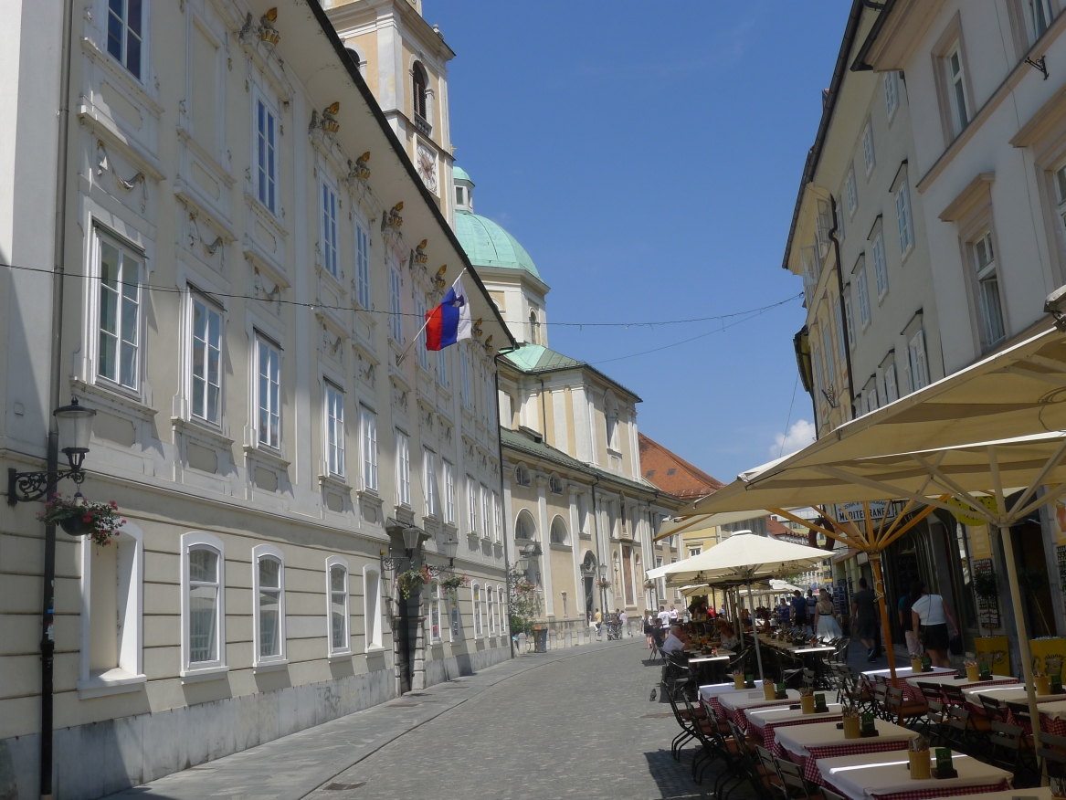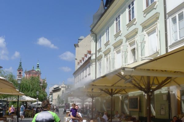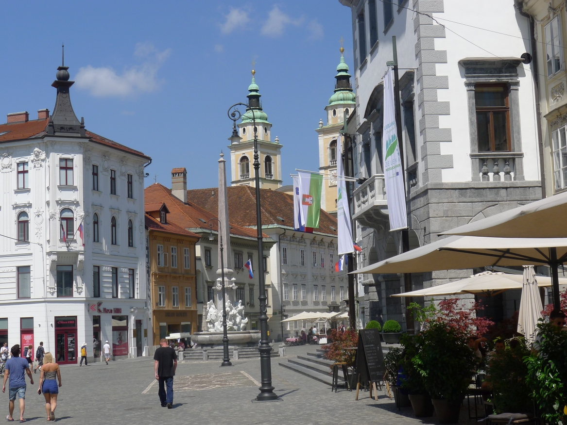 14:15 Uhr: Ankunft in der Altstadt von Ljubljana. Wir steuern gleich ein Cafe an, Durstlöschen und Koffeinspeicher aufladen ist die Devise.