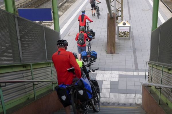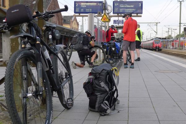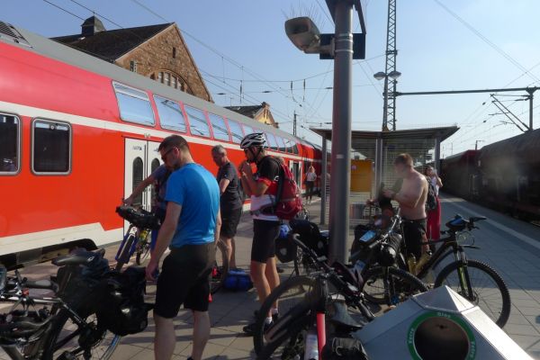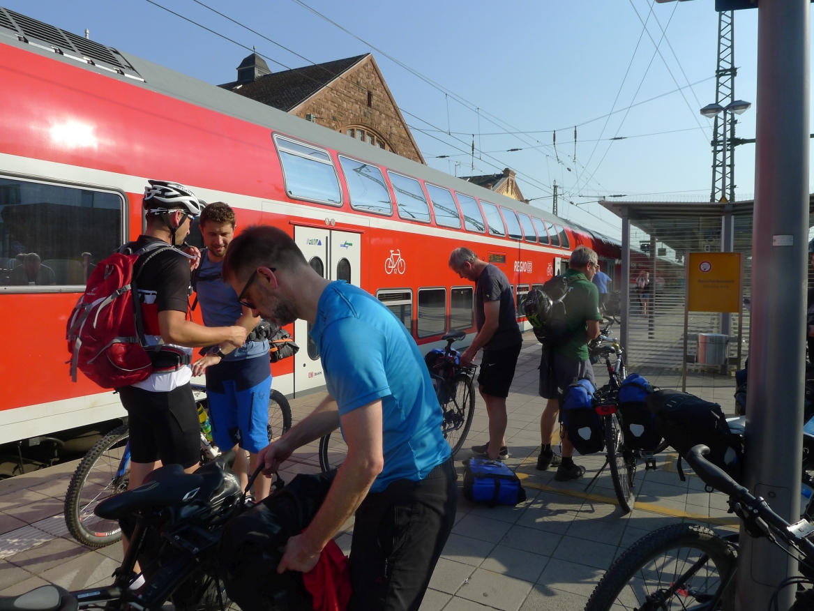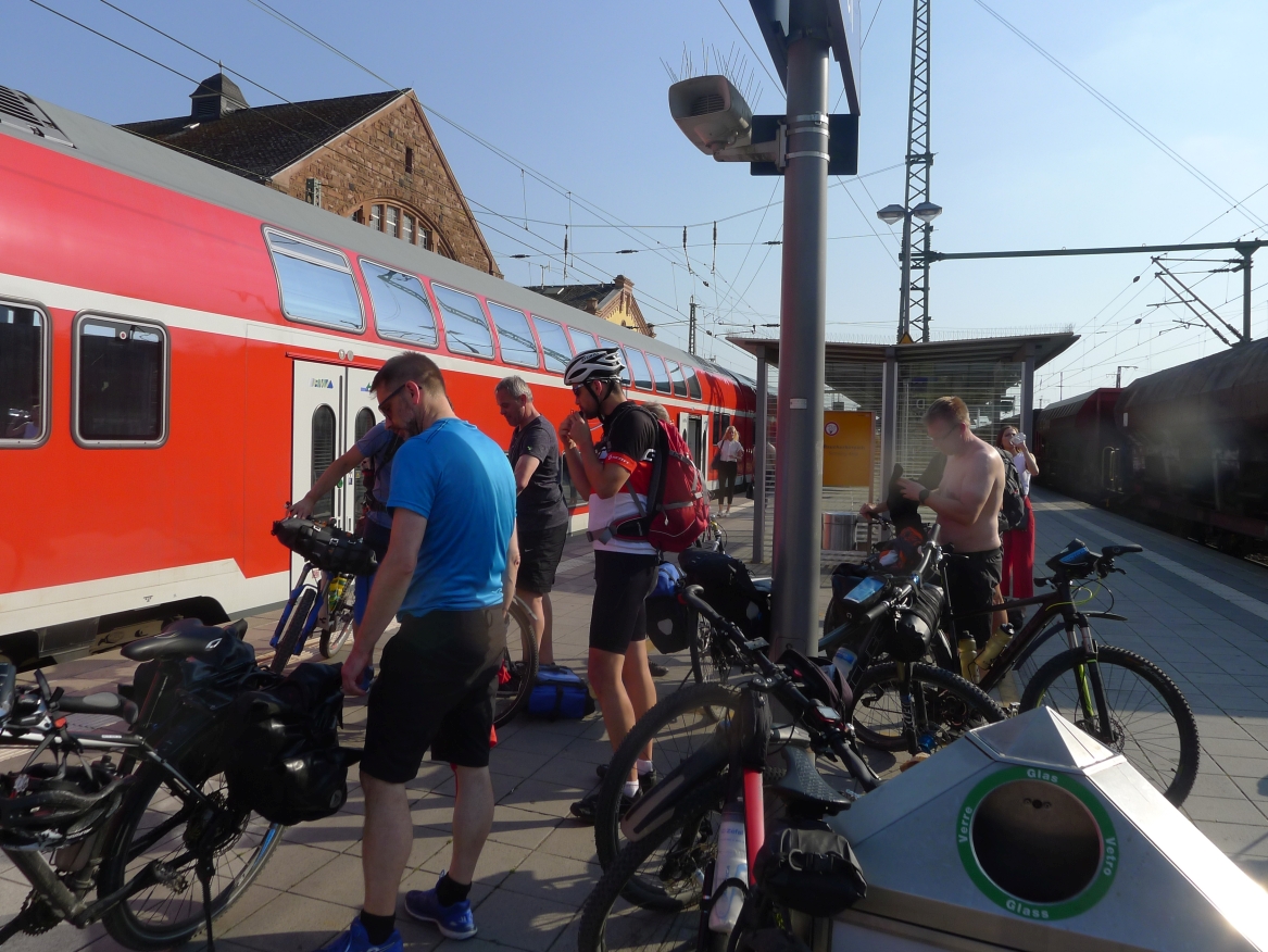 16:52 Uhr: Ankunft in Frankfurt mit 1 Stunde Verspätung. Wir verabschieden Jan, lassen ihn im Eurocity zurück und steigen in den Regionalzug nach Gießen um. Hier ist die Luft mindestens genauso drückend wie im Abteil des Eurocity mit defekter Klimaanlage. Dazu kommt der Duft von Radklamotten, die 8 Tage im Einsatz waren und nur gelegentlich gewaschen wurden…. Hmmm lecker….