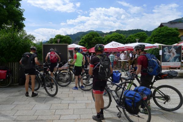 19:27 Uhr: Ankunft am Dorfplatz in Vollnkirchen. Hier endet unsere 3. Alpenüberquerung. 550 km und 6930 Höhenmeter haben wir in den letzten Tagen zurückgelegt.