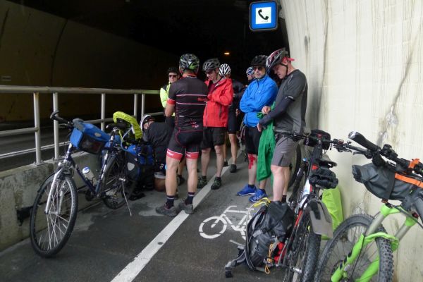 14:50 Uhr: Wir verlassen den Pongau. Einfahrt in den 2km langen Klammtunnel am Beginn des Gasteiner Tals. Angenehme 20 °C im Innern, aber ein ohrenbetäubender Lärm, da uns nur eine Leitplanke von der Bundesstraße trennt. Am Tunnelausgang regnet es bereits. Wir entscheiden uns zu warten, was sich als gute Entscheidung herausstellt.