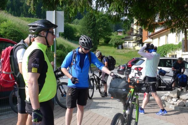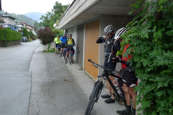 Es ist 5:30 Uhr, ganz Vollnkirchen schläft…. Ganz Vollnkirchen ? Nein ! eine Gruppe von Fahrradbekloppten macht sich wieder auf den Weg, um die Alpen mit dem Rad zu bezwingen….