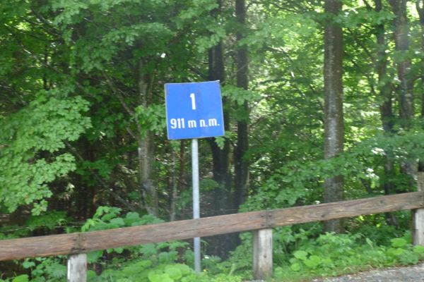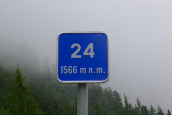 16:48 Uhr: die Paßhöhe auf 1611m ist erreicht. Die letzten Kilometer fahren wir wieder durch eine geschlossene Wolkendecke.