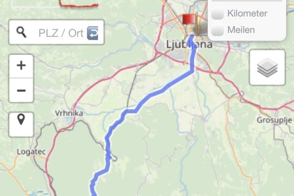 16:20 Uhr: wir nehmen die letzten Kilometer nach Postojna in Angriff. Eine gesperrte Straße kann uns dabei zunächst nicht aufhalten, als wir aber vor einer unpassierbaren Brücke stehen, müssen wir doch umkehren und eine 10km lange Umfahrung in Kauf nehmen.