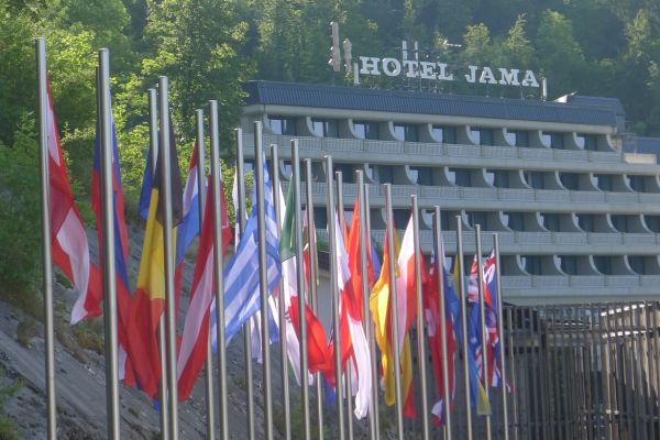 18:56 Uhr: Ankunft am Hotel, direkt neben der Höhle von Postojna.