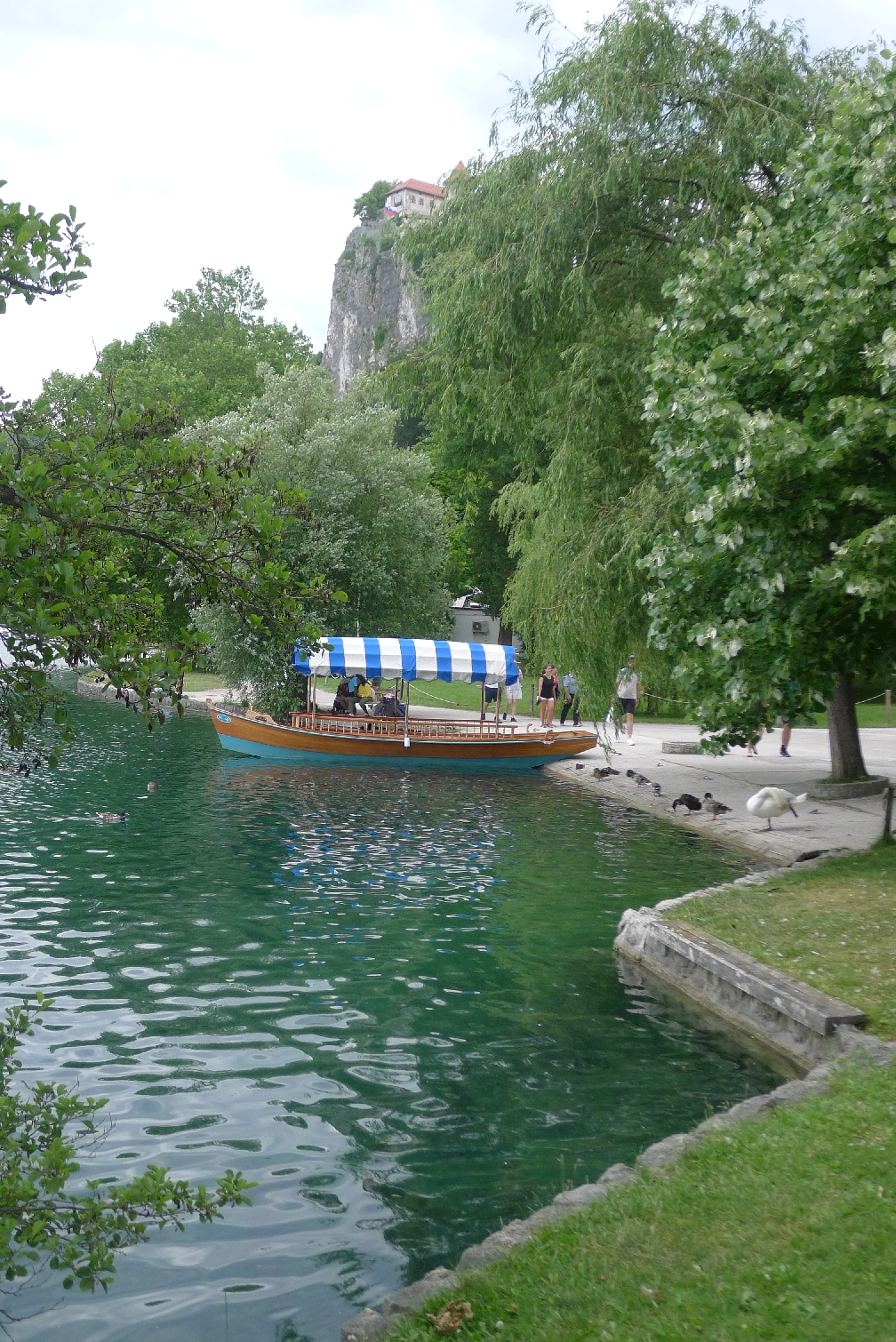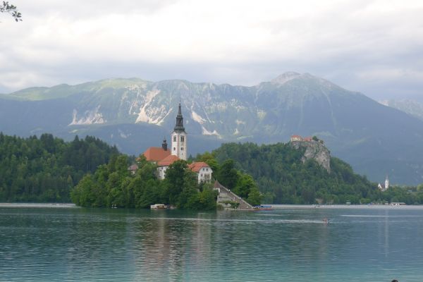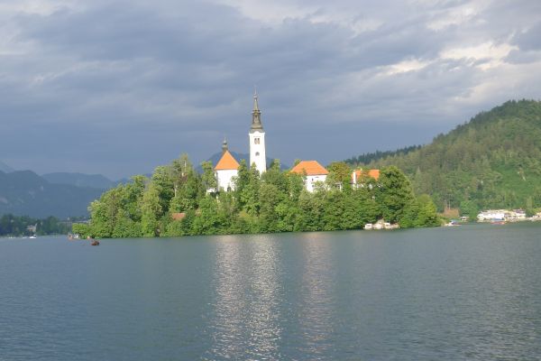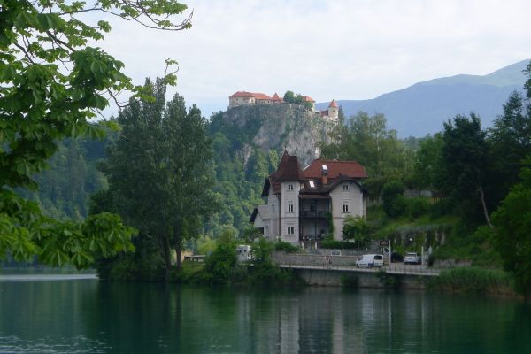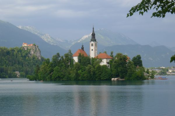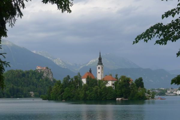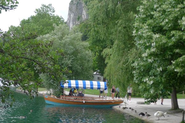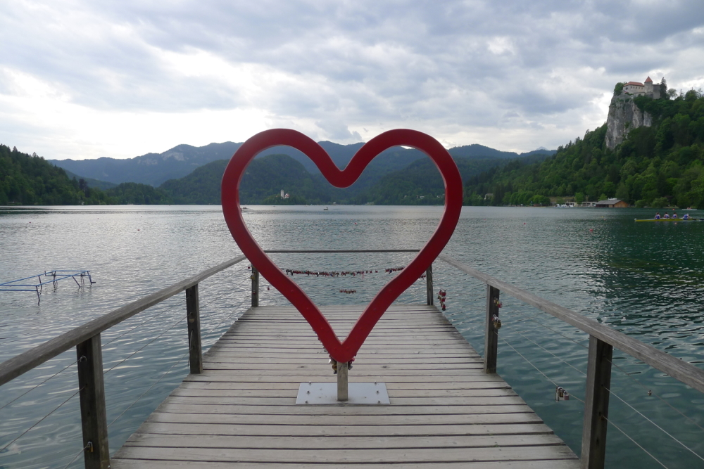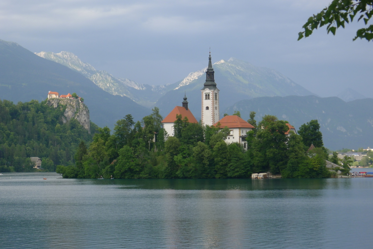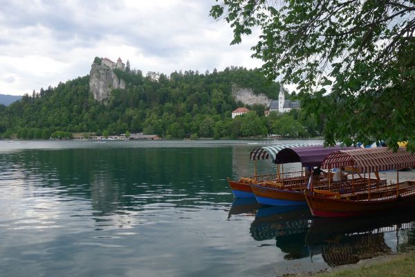 17:48 Uhr: wir kommen am Seeufer in Bled an und begeben uns auf eine Runde um den See. Immer wieder gibt es schöne Ausblicke auf die Marieninsel, die alte Burg und die dahinter liegenden schneebedeckten Gipfel der Karawanken.