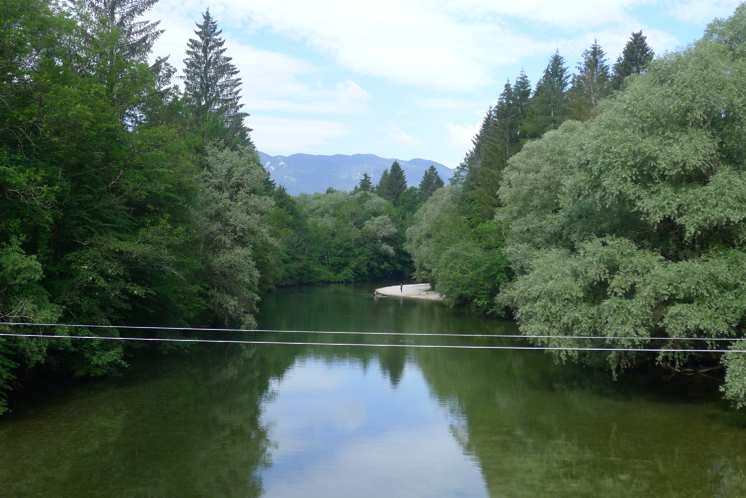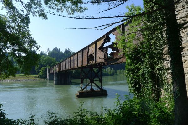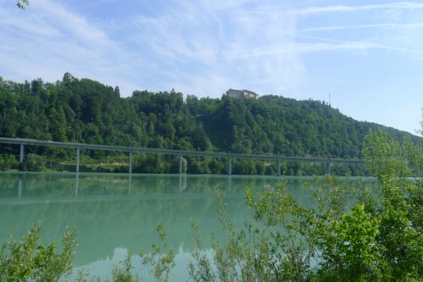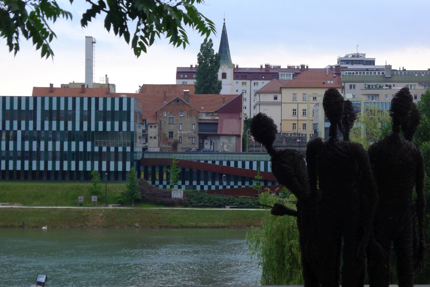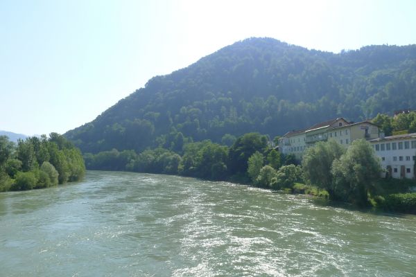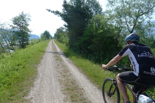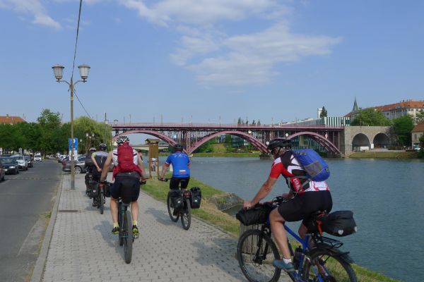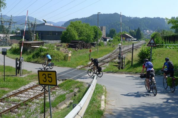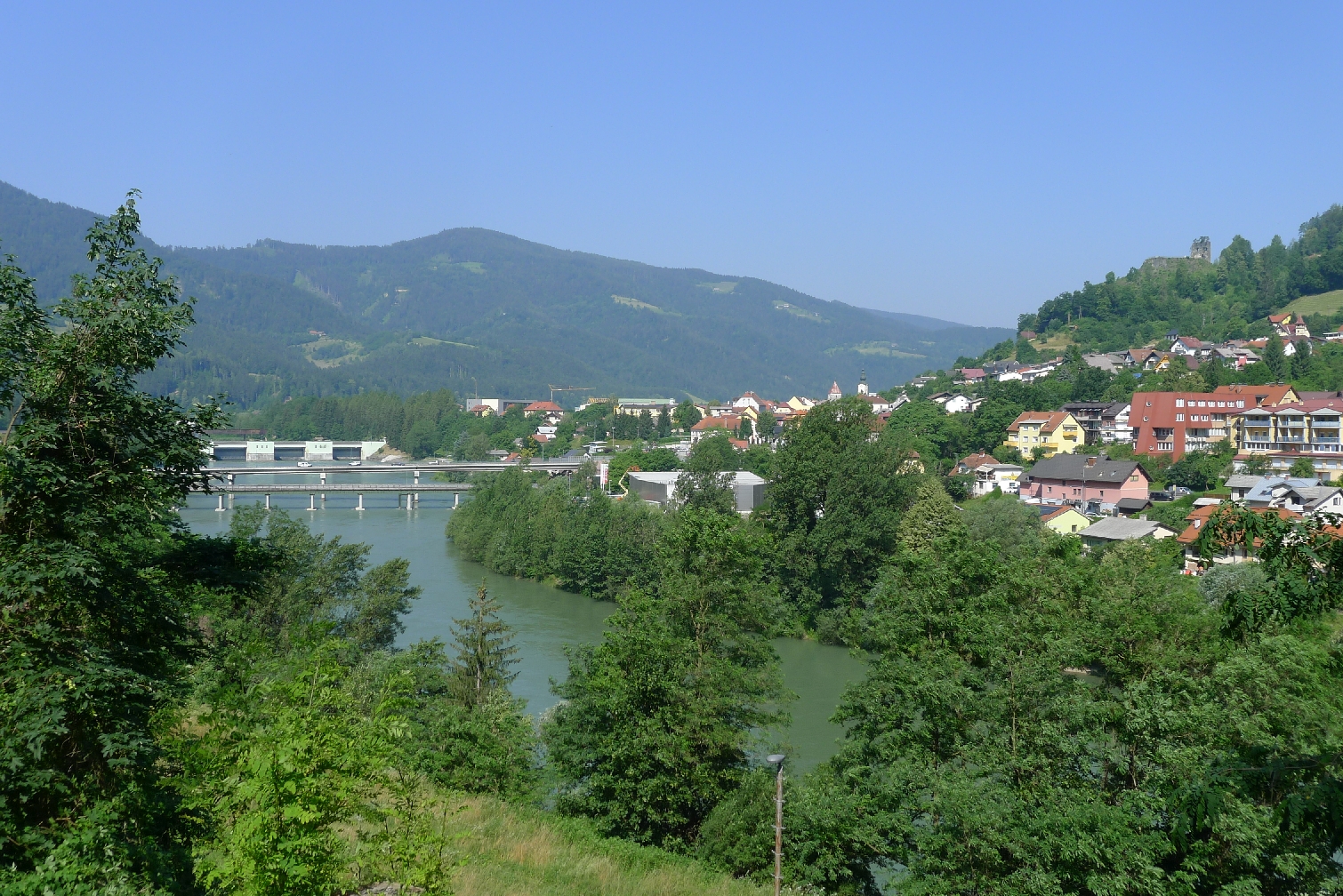 15:20 Uhr: der letzte Anstieg zwischen Puščava und Činžat ist geschafft, nun geht es hinunter nach Fala an die Drau. Über Ruše/Maria Rast radeln wir entlang des Flusses auf Maribor zu. Das letzte Teilstück ist landschaftlich nicht mehr ganz so reizvoll, aber dafür fahren wir auf einem nagelneuen Radweg auf das Etappenziel zu.