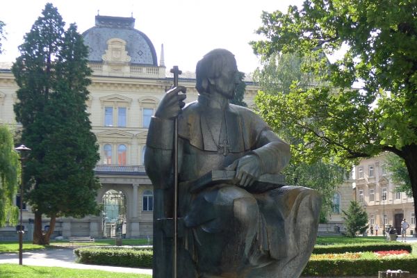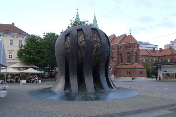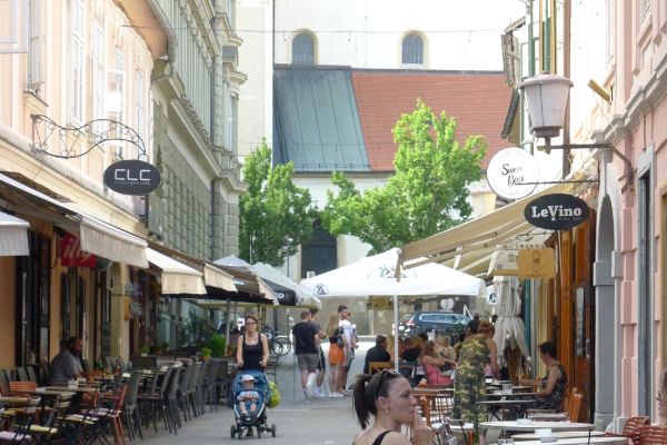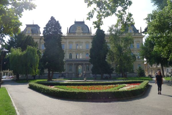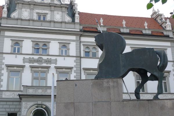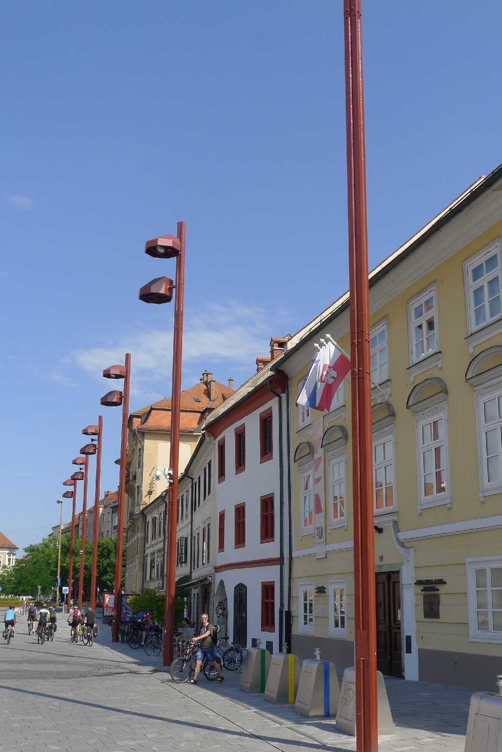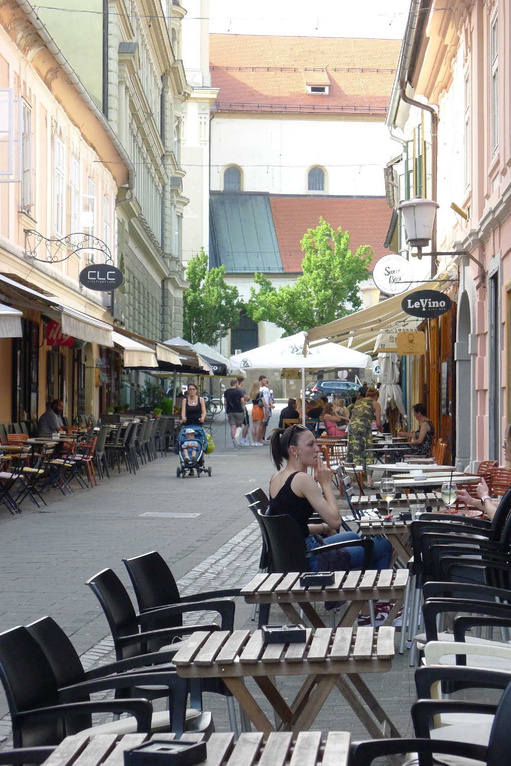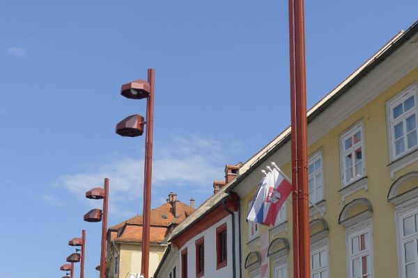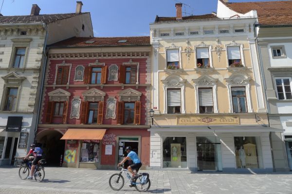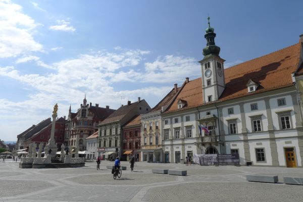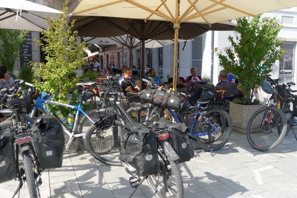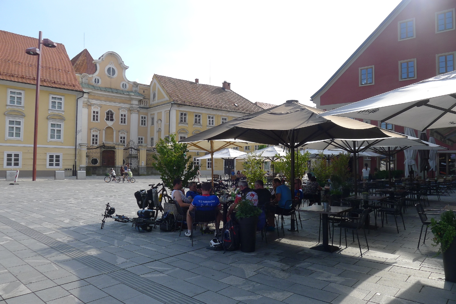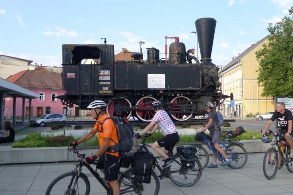 6:55 Uhr: wir satteln auf. Nochmal geht es ein kleines Stück durch die Altstadt. Vorbei am Schloss, dem Platz Trg Svobode und der Franziskanerkirche fahren wir zum Bahnhof.
