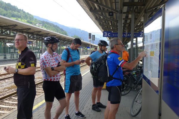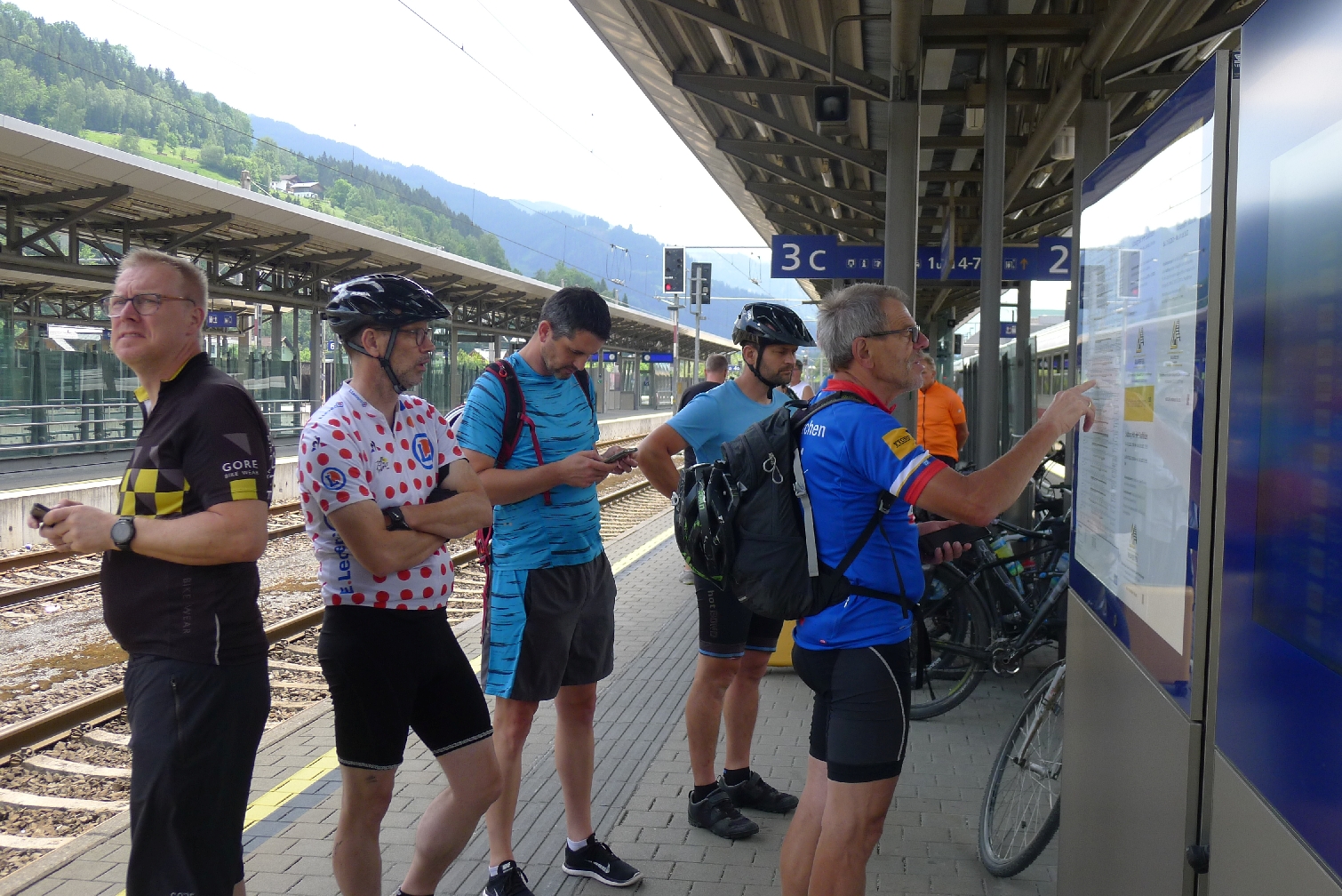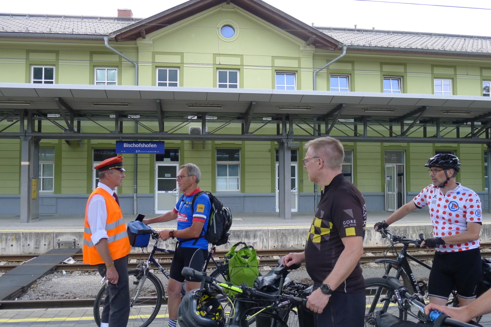 13:12 Uhr: Ankunft in Bischofshofen mit 24 minütiger Verspätung. Da wir beim nächsten Umstieg in Salzburg nur 8 Minuten Zeit haben, versuchen wir einen früheren Zug zu nehmen. Der Bahnhofsvorsteher funkt den Zugführer eines Intercity an und meinte, dass es klappen sollte.
