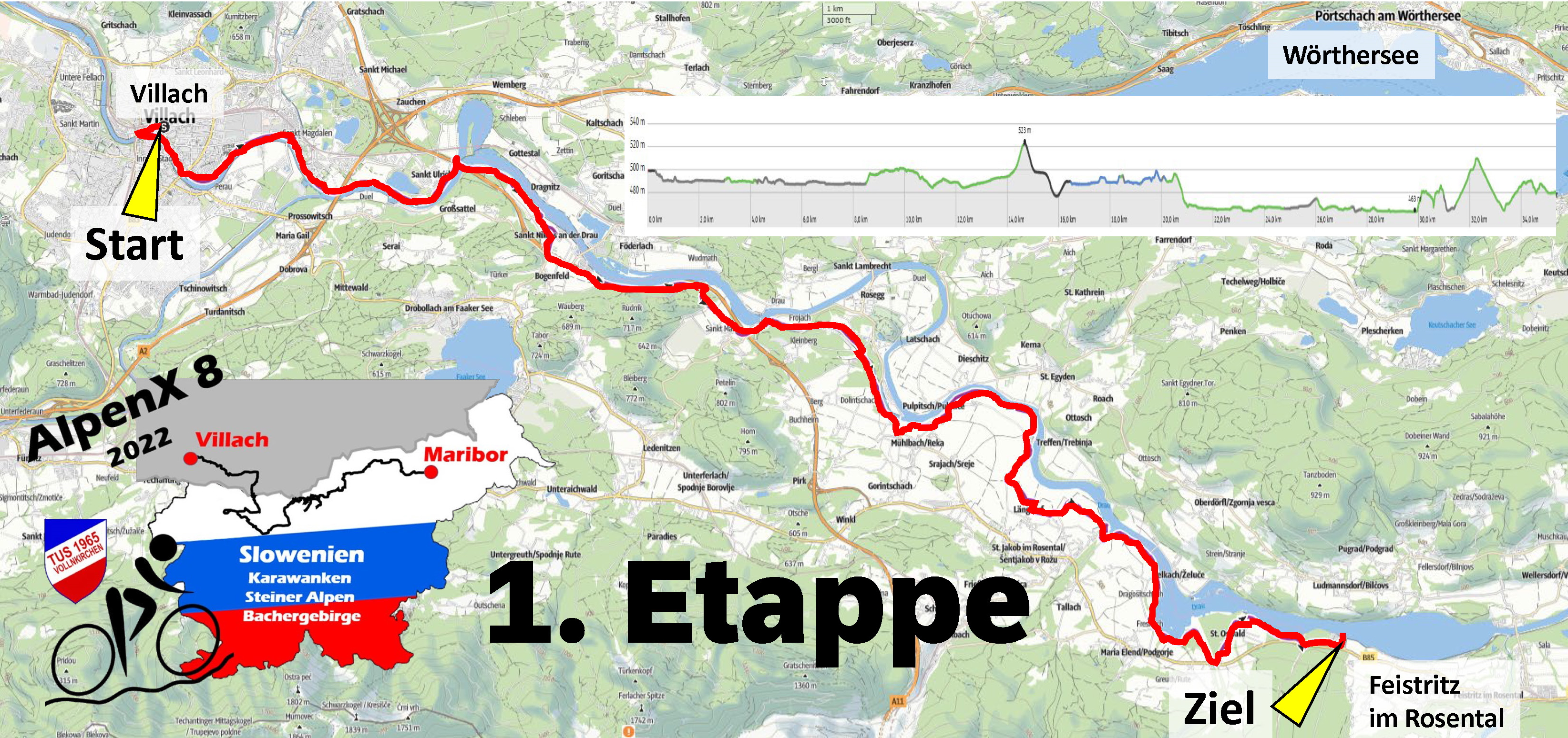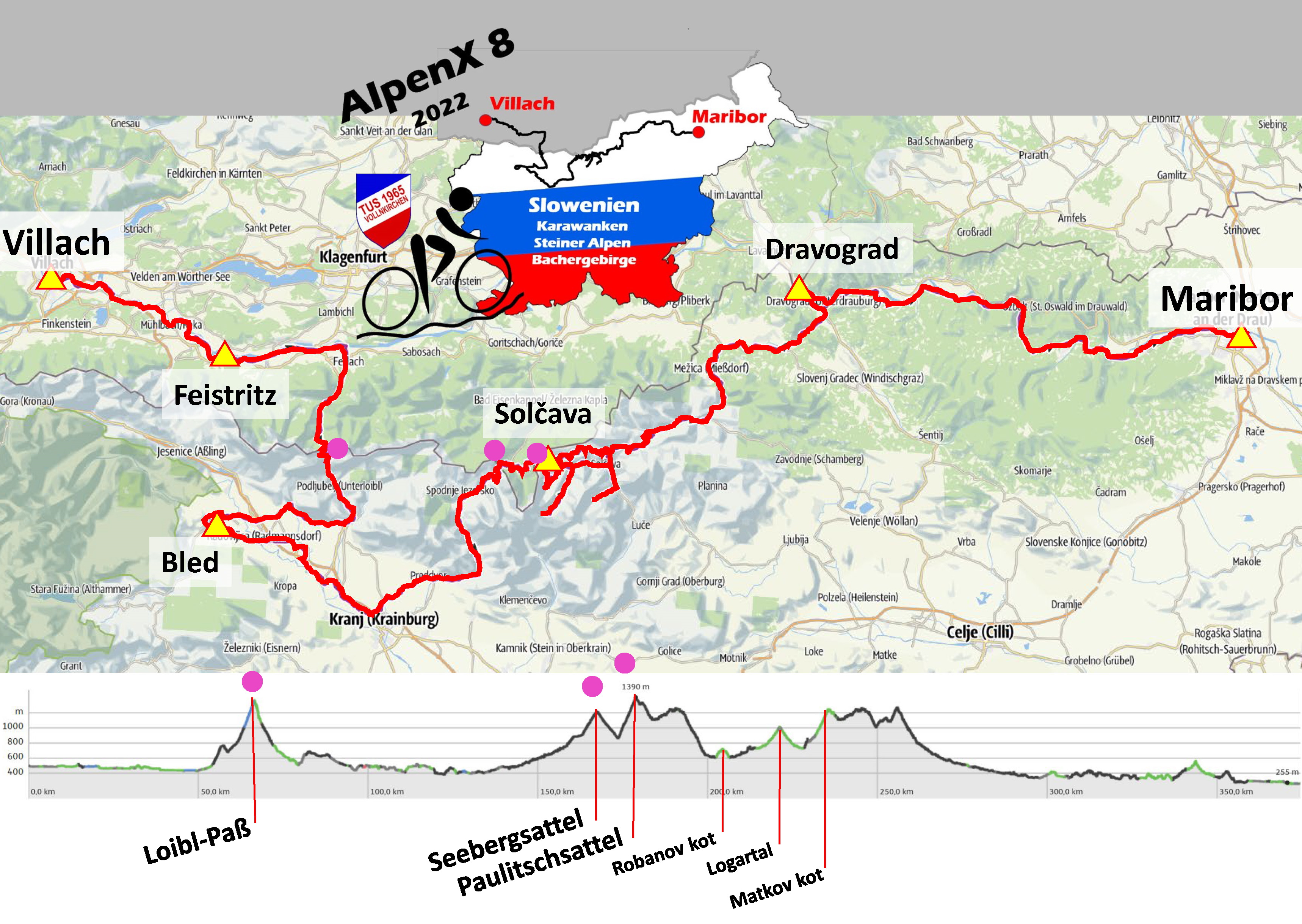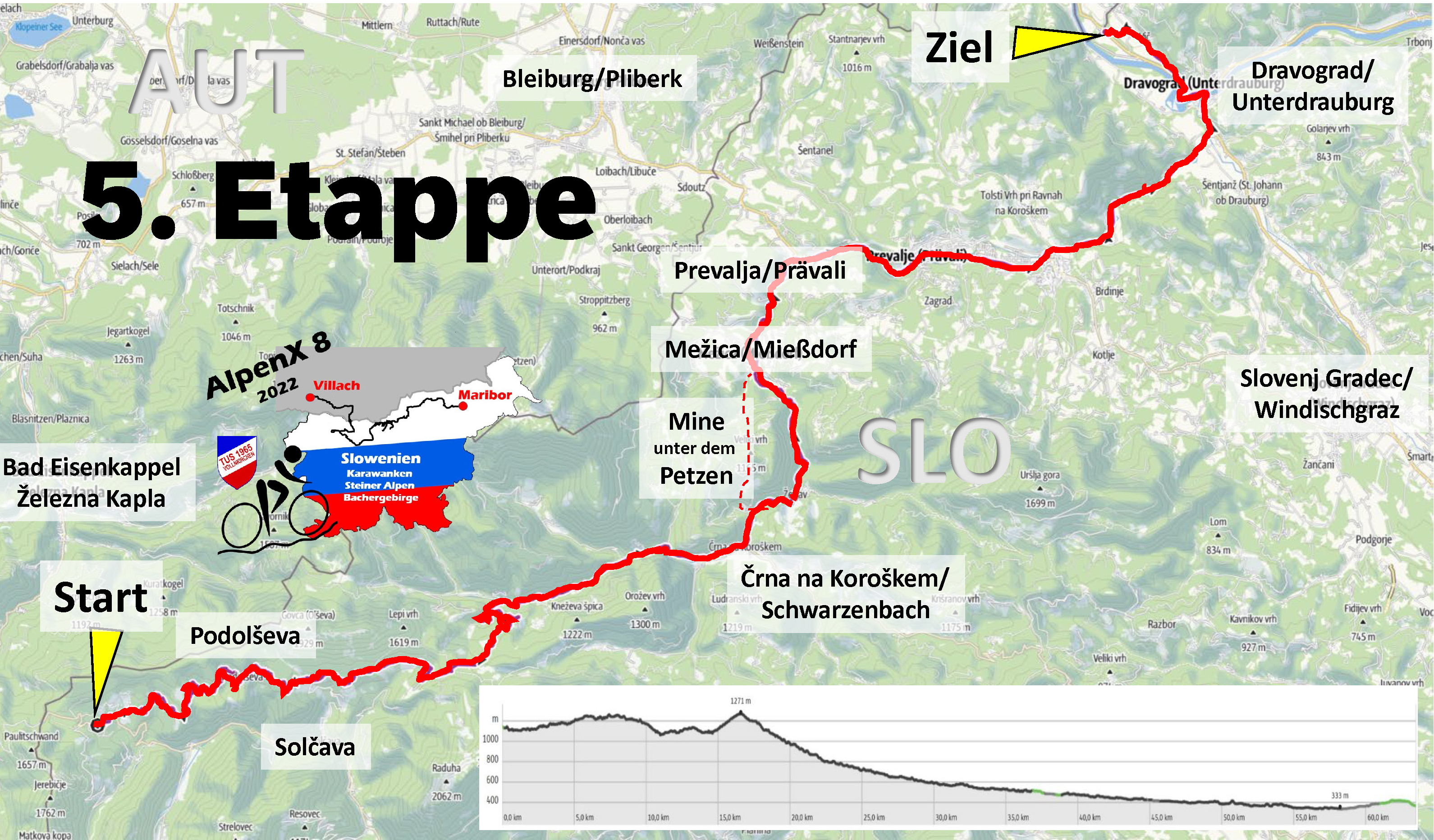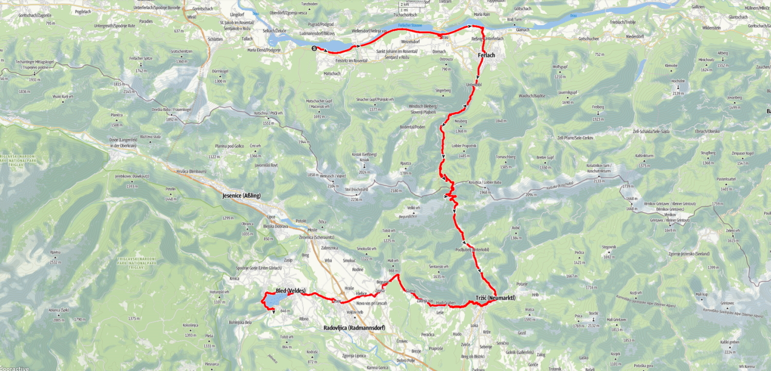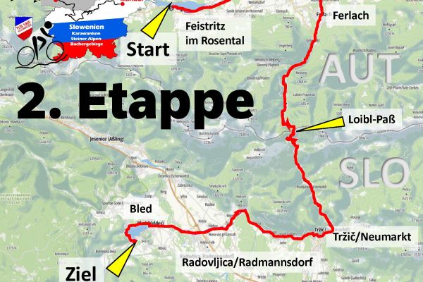 Etappenorte: Feistritz im Rosental, Bled, Solcava, Dravograd, Maribor