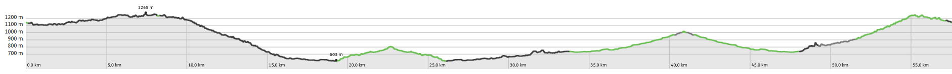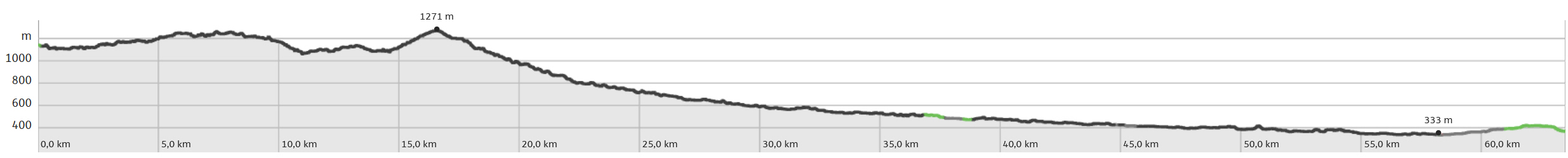 12:45 Uhr: wir haben den höchsten Punkt des Tages erreicht und gehen auf eine 5km lange Abfahrt.