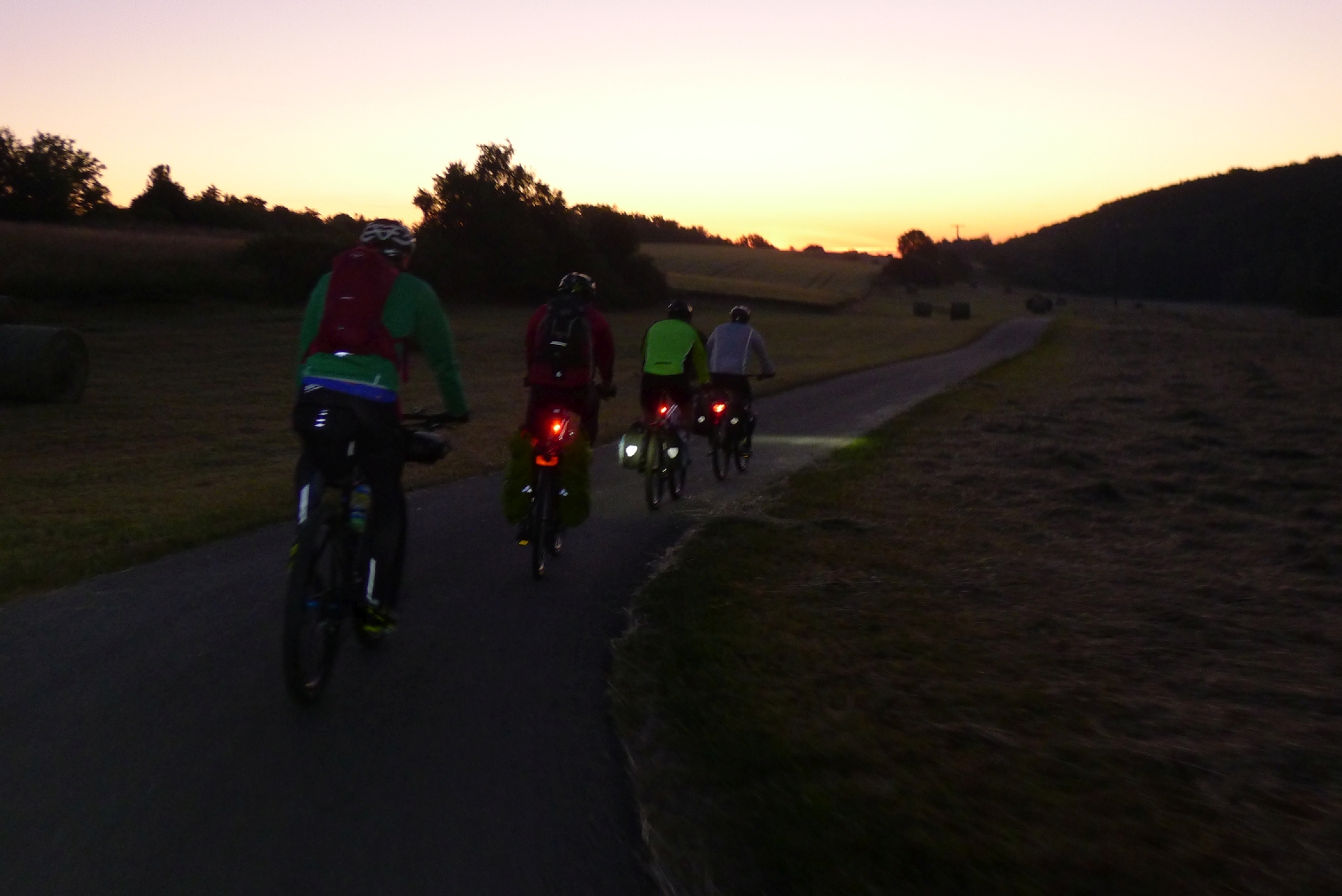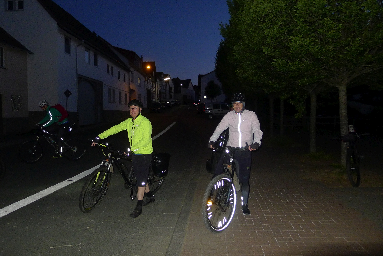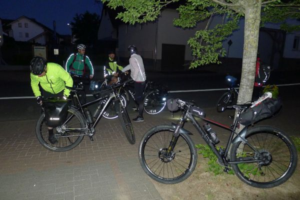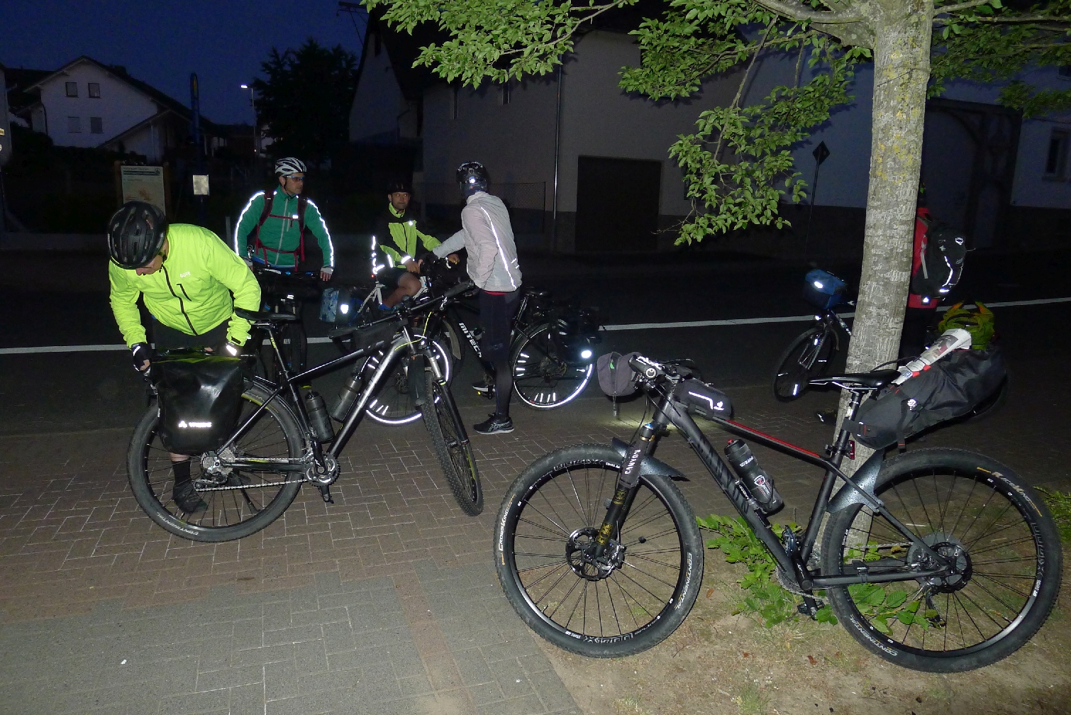 4:40 Uhr: Edwin wartet schon ungeduldig am Brückelchen „Männer, es hieß Abfahrt 4 Uhr 30 nicht 4 Uhr 40 Uhr“. Wir rollen dem Sonnenaufgang entgegen nach Gießen.