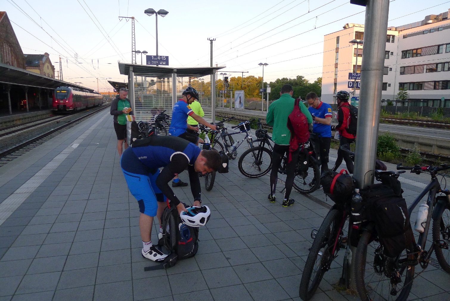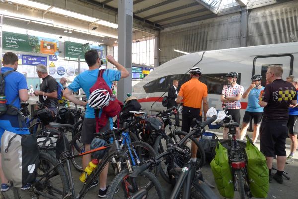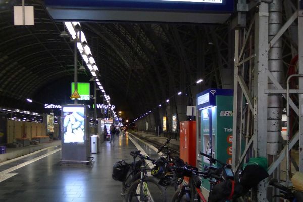17:42 Uhr: Ankunft am Hauptbahnhof, trotz aller Umplanungen und Verspätungen früher als ursprünglich geplant, und so ist noch ausreichend Zeit, um uns mit Proviant einzudecken. Thomas Fahrrad wird wieder handgepäcktauglich zerlegt.