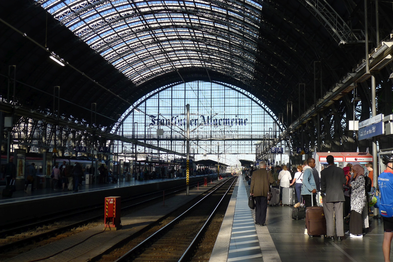 7:24 Uhr: nach einer gefühlten Ewigkeit, Umleitung über Hanau und mehreren Stopps auf freier Strecke erreichen wir den Hauptbahnhof. 1h 45 min von Gießen! Wir haben noch Zeit für einen ersten Espresso und was Süßes zum Frühstück.