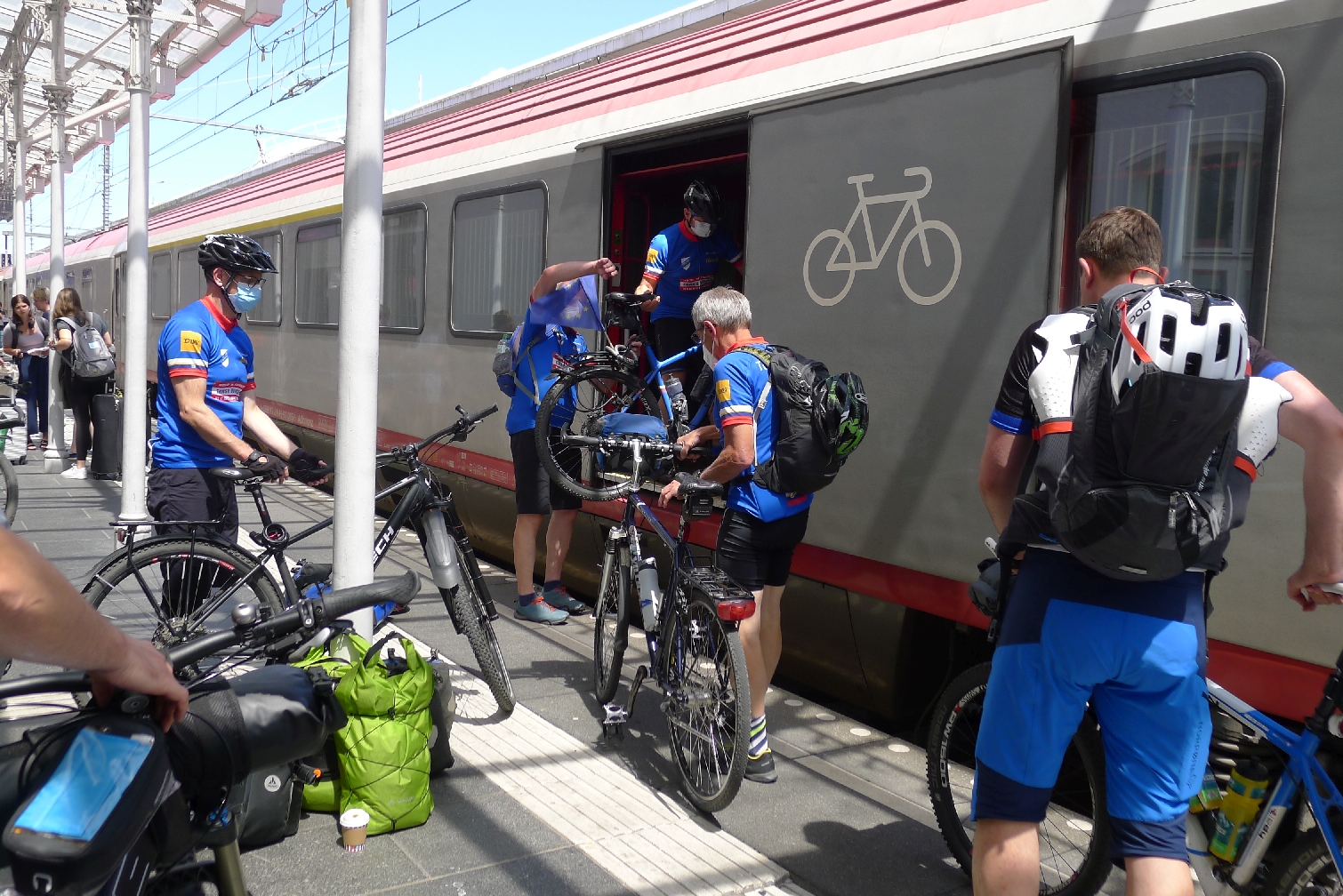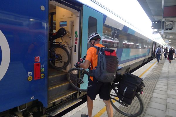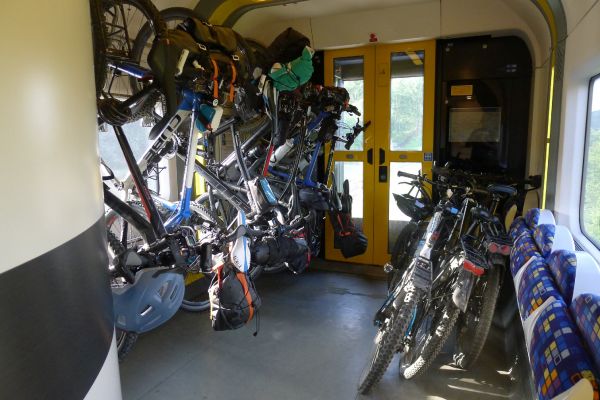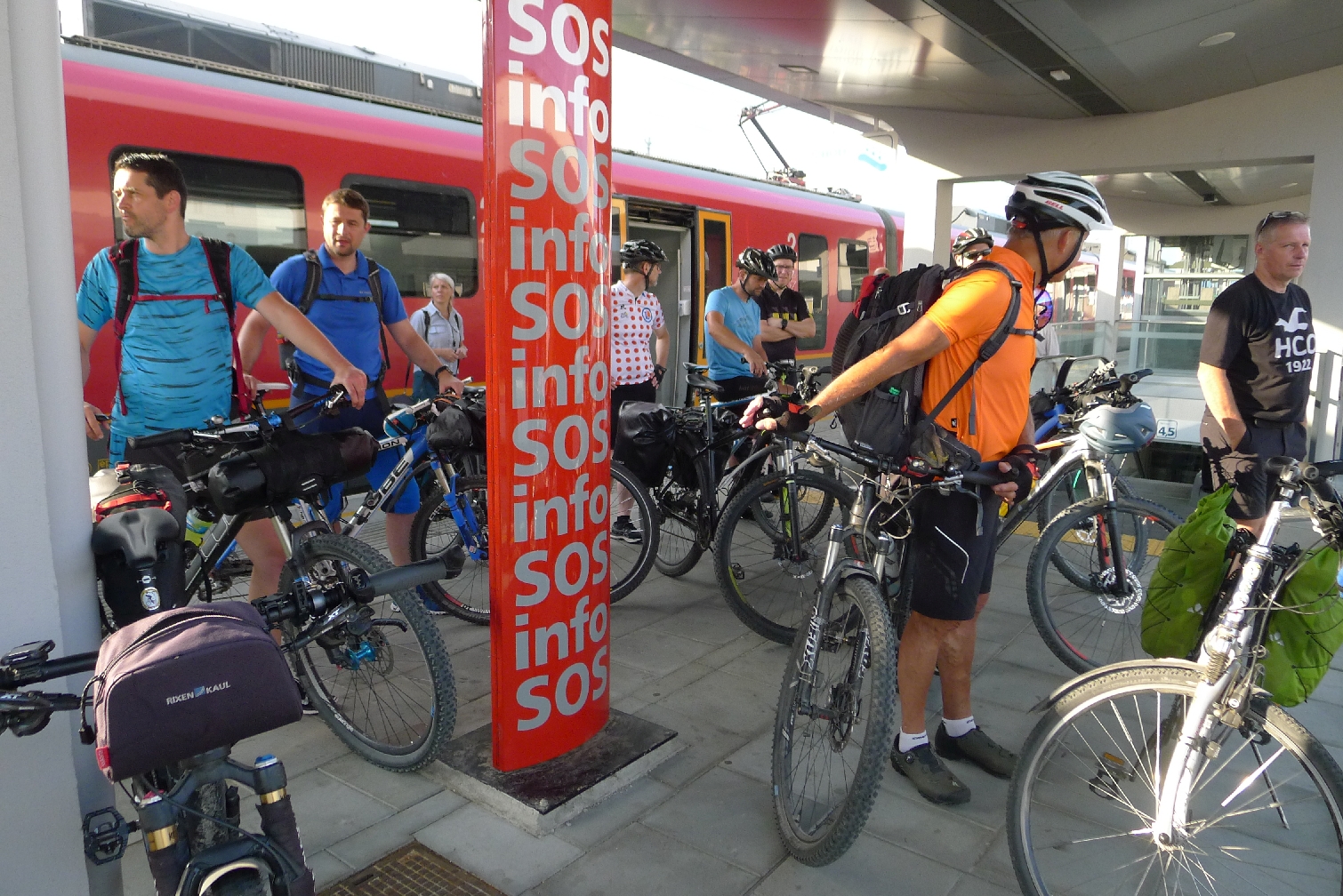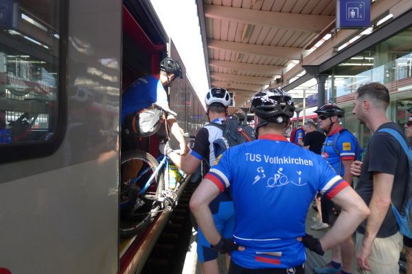 7:16 Uhr: Wir verladen die Räder in den Zug, der uns nach Graz bringt