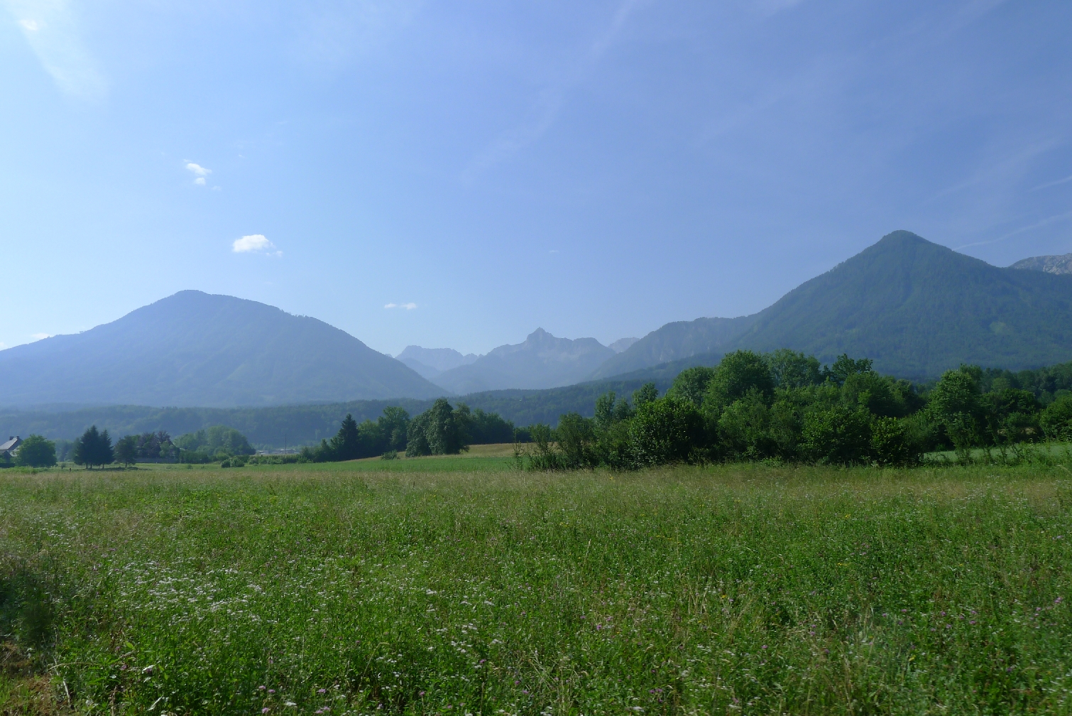 18:15 Uhr: wir fahren durch das Rosental, das eingebettet inmitten einer idyllischen Kulturlandschaft, umrahmt von Laubwäldern, Wiesen und den Gipfeln der Karawanken, liegt . Der Regen hat wieder aufgehört und die Sonne schiebt sich durch die Wolken.
