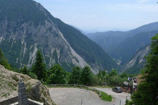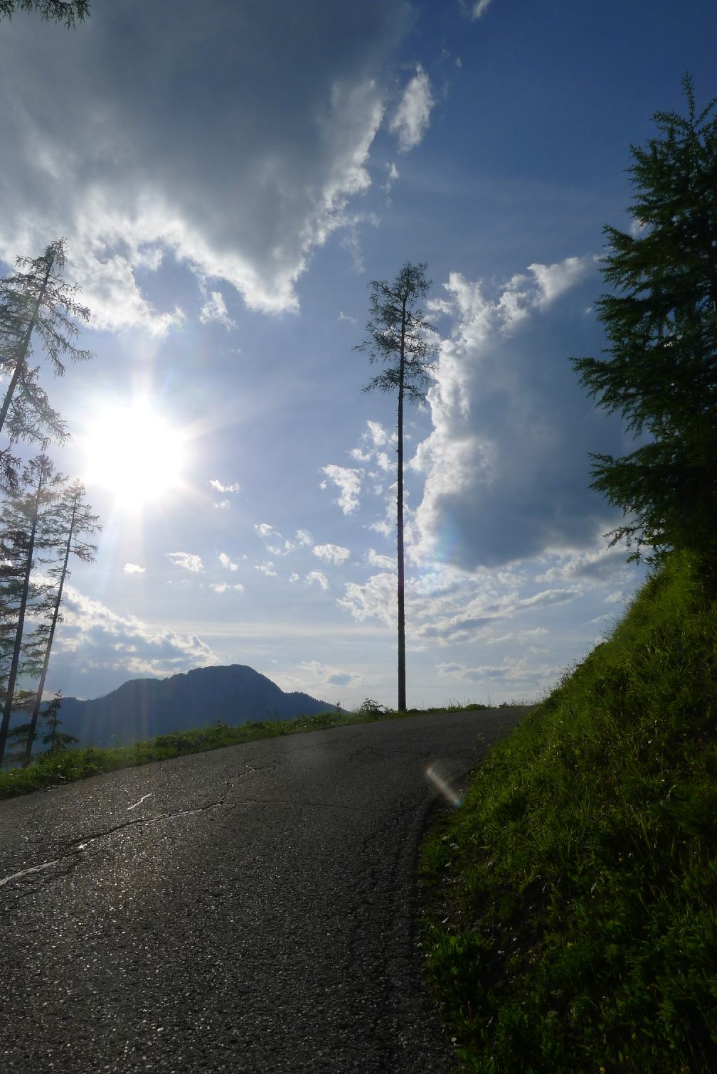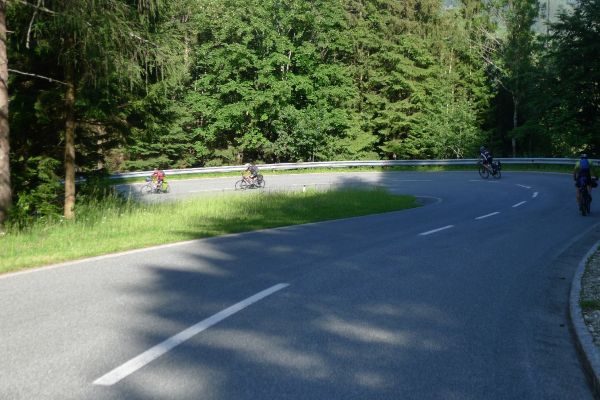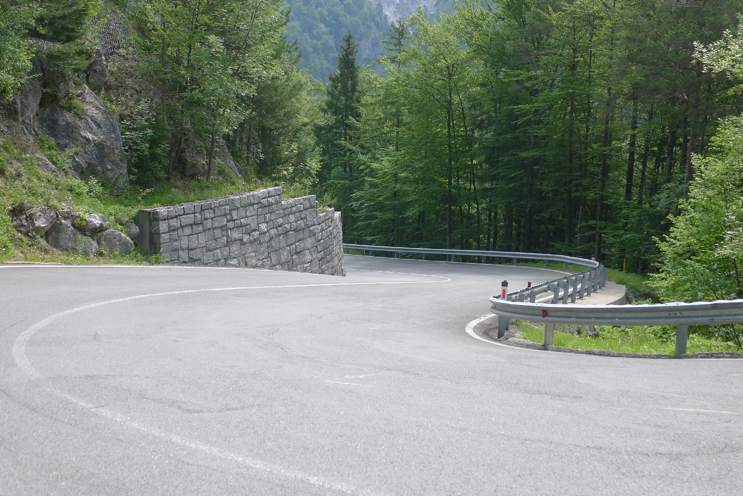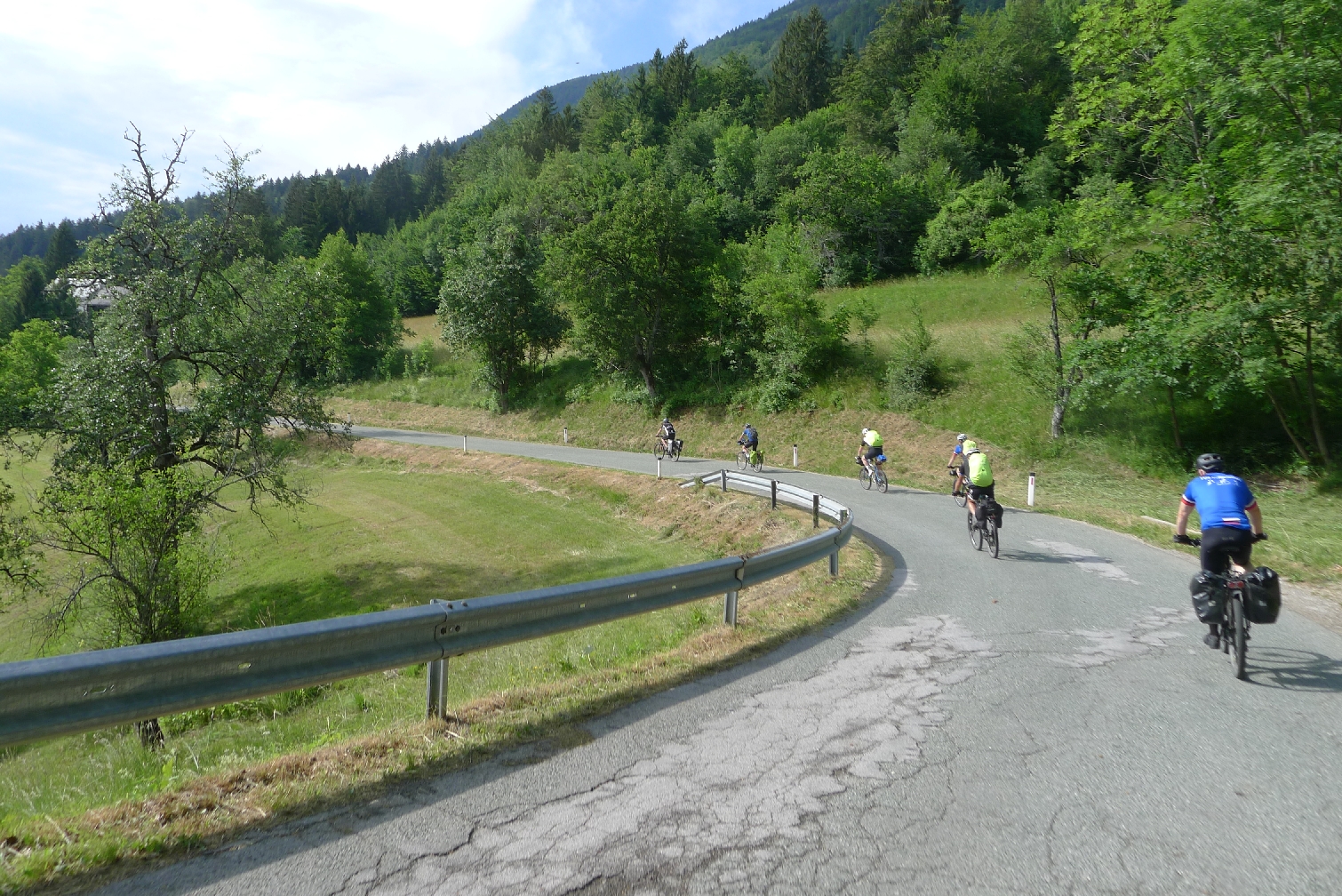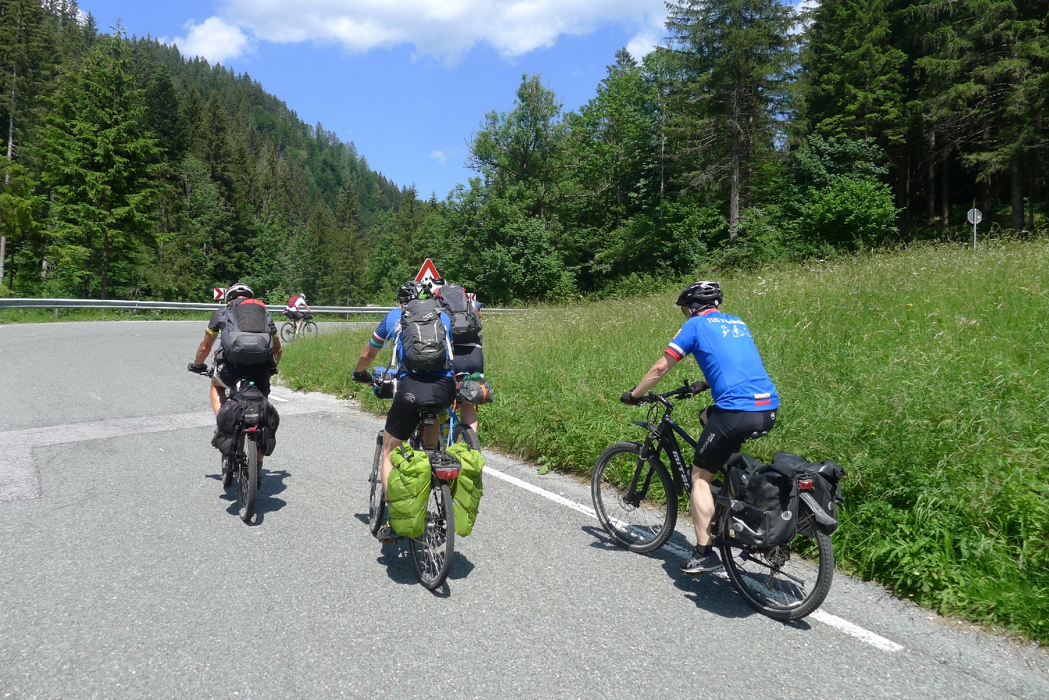 16:15 Uhr: weiter geht’s, die letzten 22 Kilometer stehen an. Zuerst der etwa 5km lange Anstieg zum Seebergsattel. Kurz hinter Zgornje Jezersko beginnen die Serpentinen, die uns in gemäßigten 6-8% Steigung zur Passhöhe bringen. Alles im schnellen Polkatakt zu Slavko Avensik aus Bernies Musikbox fahrbar, ein Genuss.