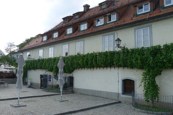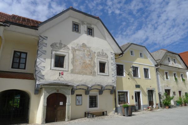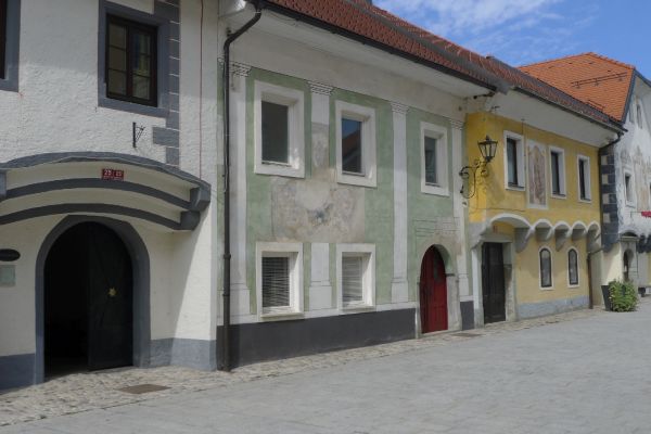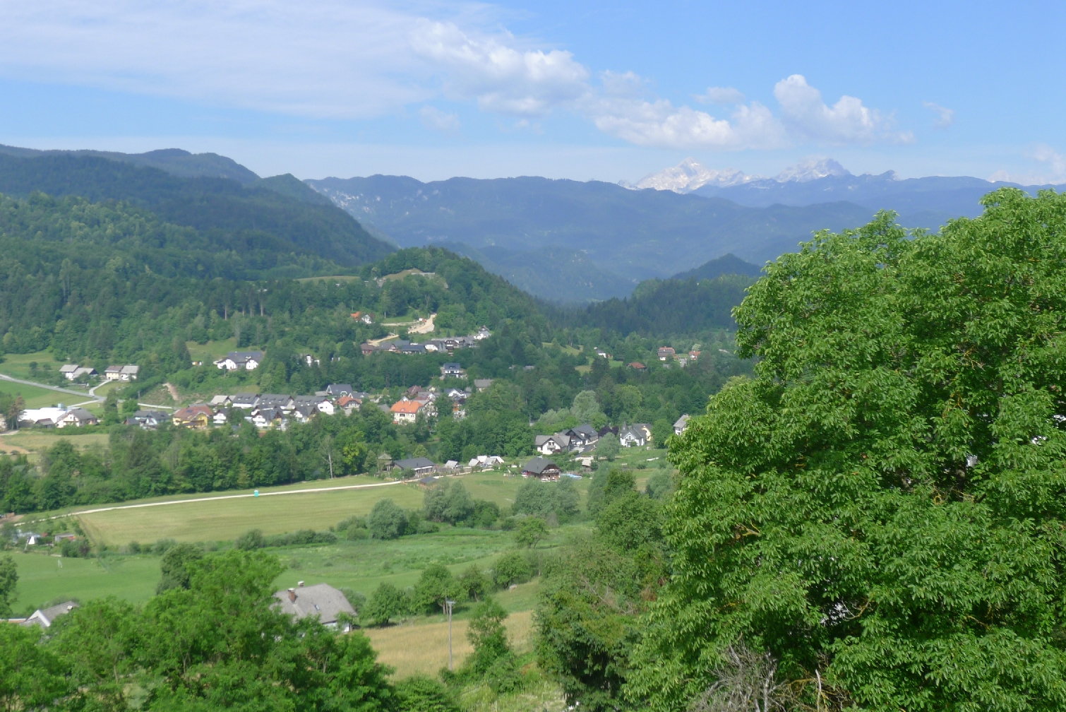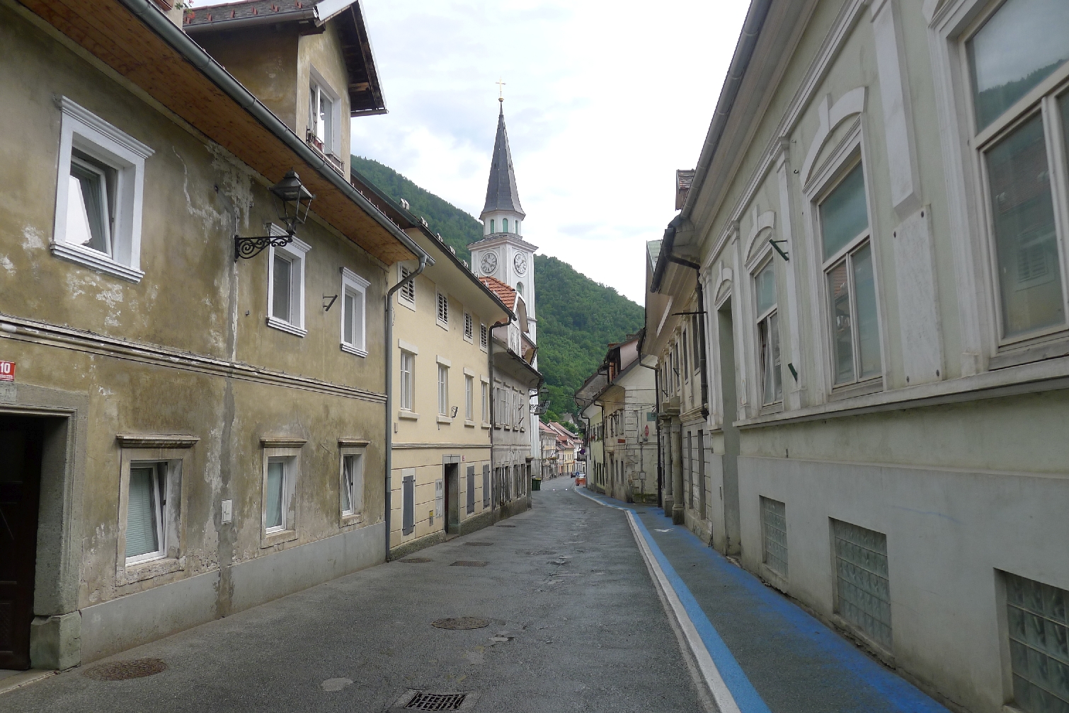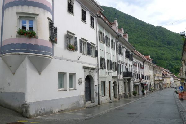 9:49 Uhr: Nach einem ersten längeren Anstieg erreichen wir Radovljica/Radmannsdorf. Von einer Terrasse reicht der Blick über das Tal bis zu den Julischen Alpen mit dem markanten Triglav. Der Ort selbst kann mit pittoresken Häuserfassaden aufwarten.