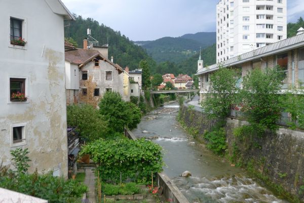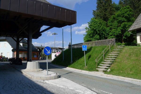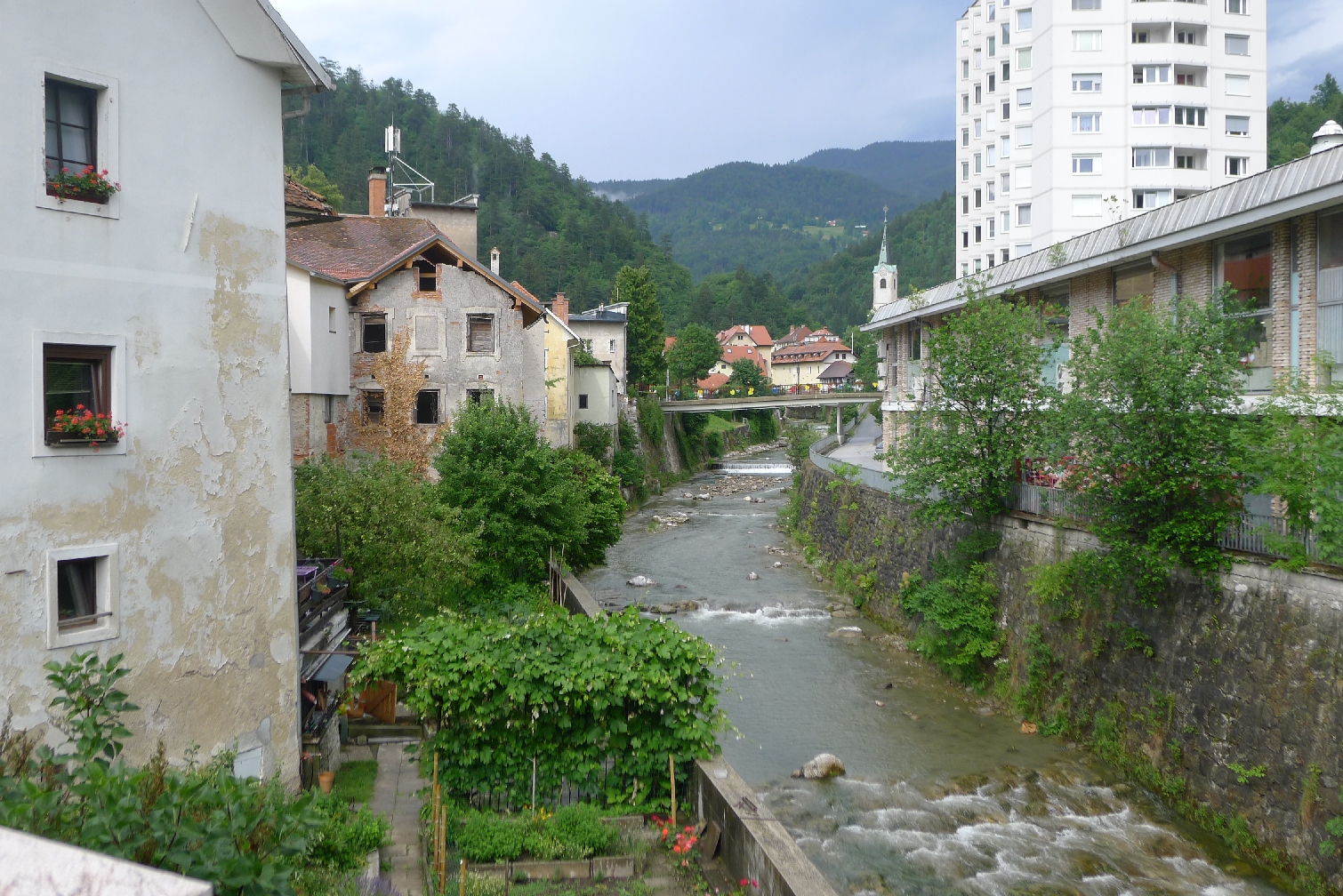 11:42 Uhr: Bei Kilometermarke 30 erreichen wir Črna na Koroškem/Schwarzenbach und fahren nun auf einer grösseren Landstrasse durch das Mežatal entlang des Flüsschen Mieß.
