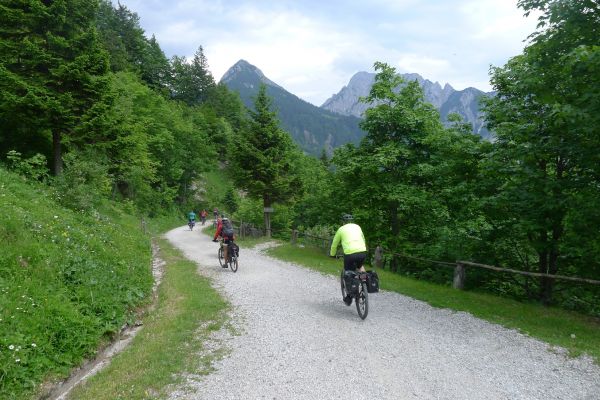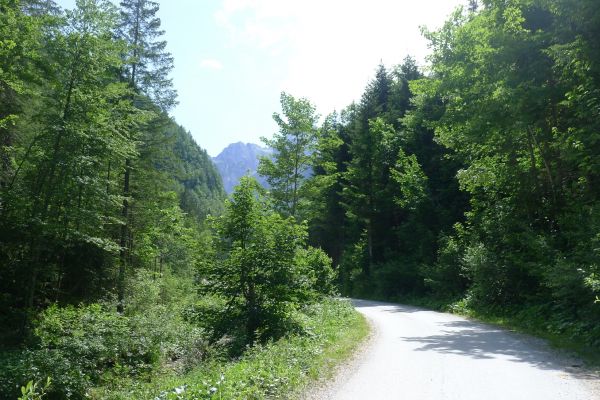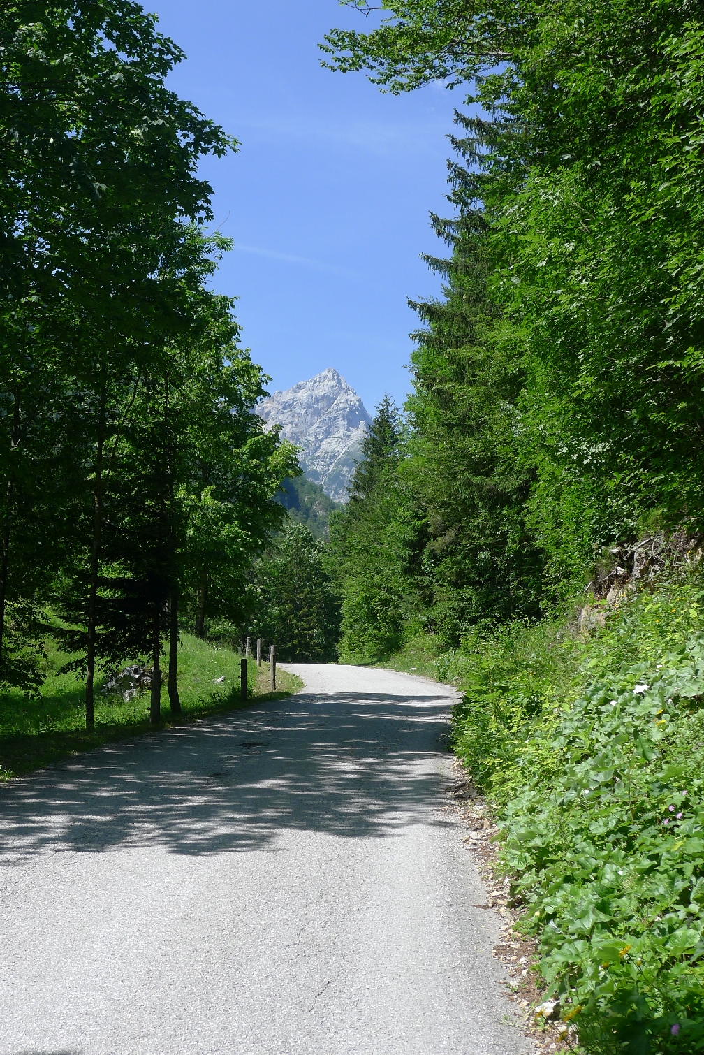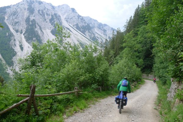 11:52 Uhr: wir erreichen den Abzweig das Logartal, das als eins der schönsten Alpentäler in Europa gilt. Nach einer kleinen Pause fahren wir in das 7km lange Tal hinein. Auf asphaltiertem Weg geht es leicht ansteigend tief in das Gletschertal hinein. Erst zum Talende hin nehmen die Steigungsprozente wieder zu.