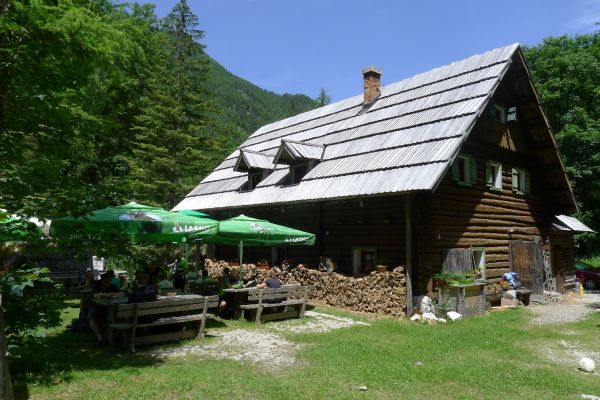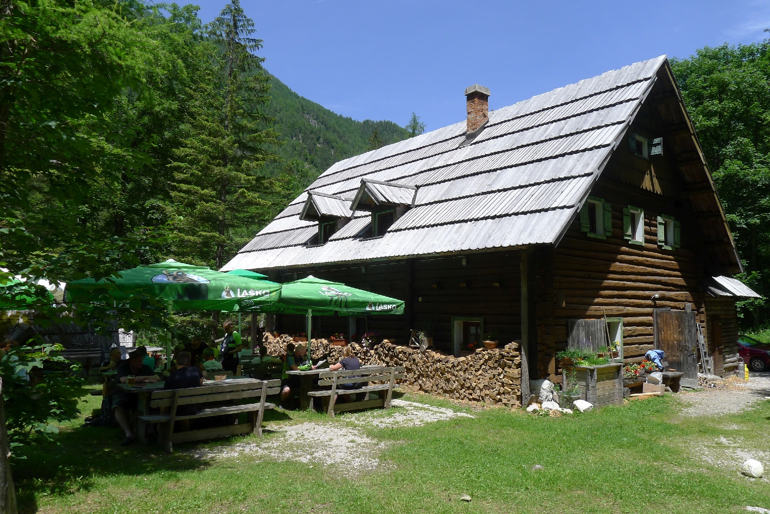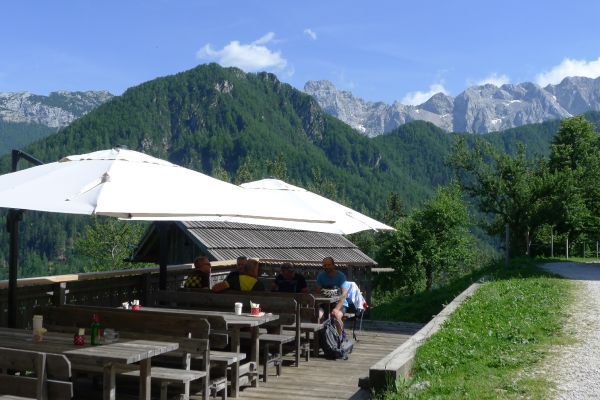 17:03 Ihr: Ankunft bei der „Planinska Dom Majerhold“. Wir lassen den Nachmittag im sonnigen Garten bei Kaffee und kaltem Bier ausklingen