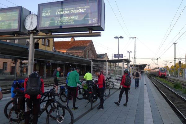 5:30 Uhr: Ankunft auf dem Bahnsteig in Gießen, die ersten 17,5km sind gefahren.
