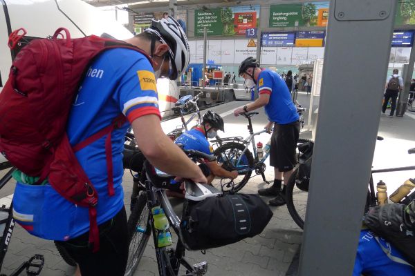 11:24 Uhr: Ankunft in München, die Räder werden ausgeladen und das „Handgepäck“ wieder zu einem Fahrrad zusammengebaut.