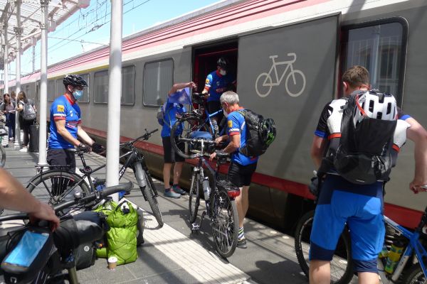 14:05 Uhr: die Räder werden in den Fahrradwaggon verladen