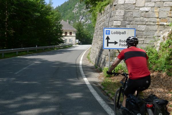10:12 Uhr: nach 19km erreichen wir in Unterloibl den Einstieg in die Paßstrasse. Bernie aktiviert die Musikbox und beschallt uns mit Schlagermusik.