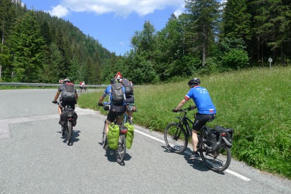 12:52 Uhr: Armins Utensilien sind in den neuen Taschen verstaut, die alten gehen mit der Post in die Heimat zurück und wir fahren weiter. Die Anfahrt zur ersten Bergwertung des Tages steht an.