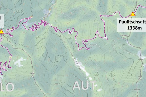 18:58 Uhr: wir erreichen den Grenzübergang am Paulitschsattel (1338).
