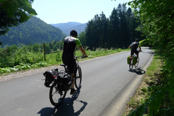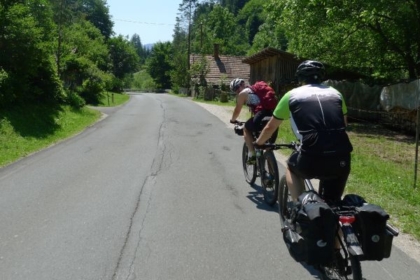 14:47 Uhr: Nach 3km kommen wir zum Abzweig ins Matkov kot Tal und nehmen diesen landschaftlich schönen Schlenker mit. Hier ist es deutlich ruhiger als auf der Landstraße und die Ausblicke sind traumhaft schön.
