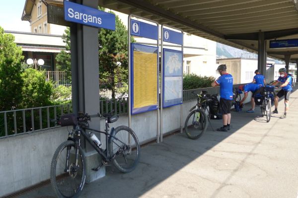 13:55 Uhr: wir kommen in Zürich an. Unseren Anschluss Intercity haben wir natürlich verpasst, aber um 14:12 fährt ein Regionalzug, der uns auch nach Sargans bringt. Durch eine Bilderbuchlandschaft geht es durch die nördliche Schweiz. Kurz vor dem Walensee werden Erinnerungen an die 2018er Tour wach. Diese Stelle haben wir auf der Etappe von Appenzell nach Glarus passiert.